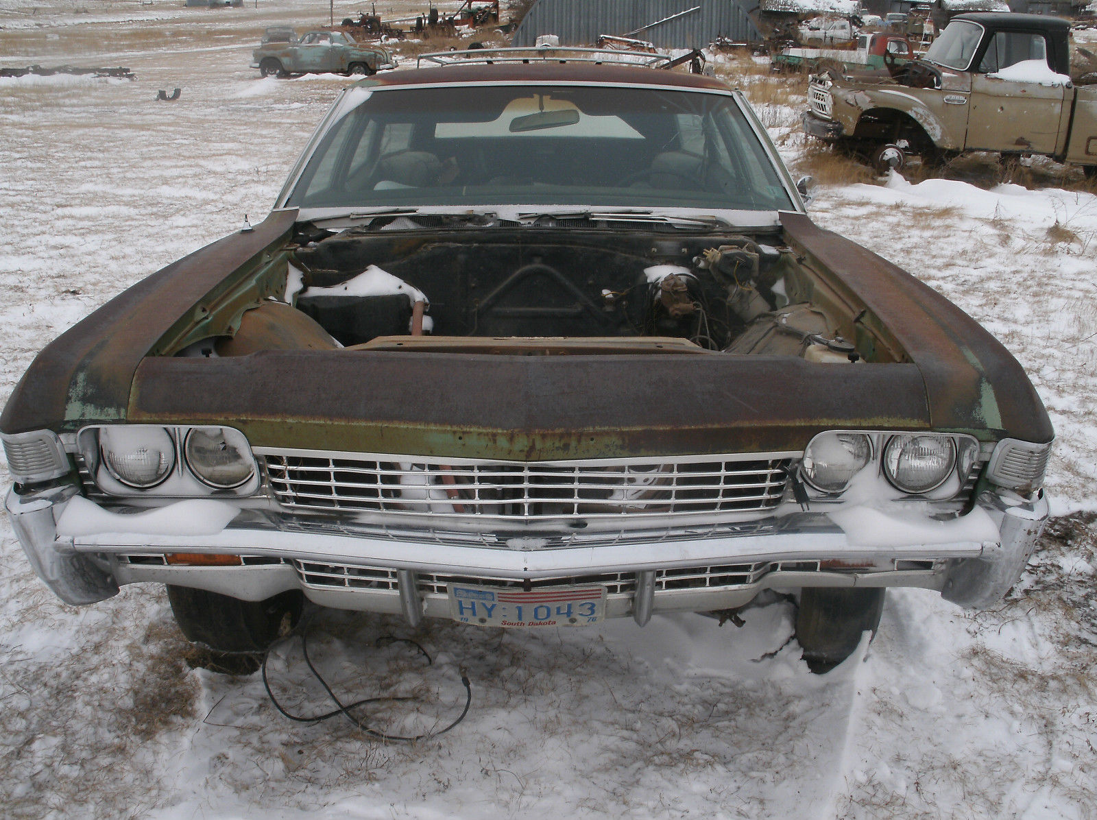 | 1968 Chevy Bel Air 4 door Wagon. Has 3 speed manual overdrive transmission. Was a 307 car but has no motor. Has 3rd seat. This is a rare. cool wagon. All it needs is your motor. Very minimal rust and has a clear title Car has very solid floors. I will post more pics. this weekend. Any questions. call (605)-852-2656. Thanks. Dan. |