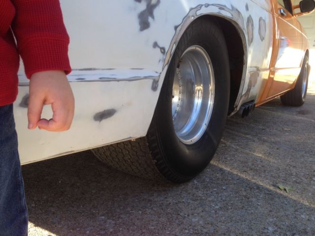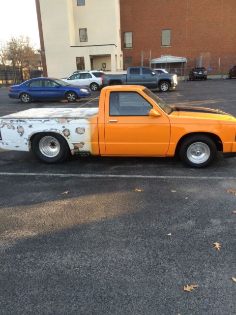 This is an 87 s10 pro street. It has a shortened 9" ford 390 gear with locker,16.5" wide pro street tires. Customs zummie style exhaust with flow master 40s, horty headers, ompetition carter afb carb, luminum race radiator, ual electric fans, ith a 5 speed. Engine is a 305 punched 30 over with low end torque cam. Engine has less than 2000 miles since it was built. Runs great this is not a drag truck this is set up to upset the neighbors and draw a lot of attention. It has a 12 gallon race fuel cell with gauge custom sheet metal dash painted to match, arge drag tach. Custom head and tail lights. Welded roll pan shaved tailgate. Battery relocated to rear with main battery disconnect. 2" drop spendles new pads and rotors. The body work on the bed is done its ready for primer and paint. I have run out of time and money. It will take very little work to finish this truck. Mechanically it's ready to go. Don't let the size of the engine fool you I can roast the tires through 3rd gear and catch 4th. I have driven it several times no issues this truck can be driven everyday if you wanted. I will be happy to answer questions and supply extra pics. Please serious inquiries only. NO RESERVE!!!!