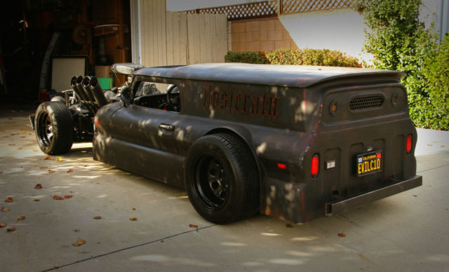 Are you ready for something different? Tired of all the Model A rat rods out there? This thing will turn heads faster than any exotic car. It draws a huge crowd wherever it goes. This is a fairly new build. Almost all the parts are new, ven though they are painted to look old. Here are the specs: Originally started life as a 1966 Chevy pick up truck The powerplant is a freshly rebuilt Chevy 454 big block Transmission is a freshly resealed Turbo-400 Rear end is a Pontiac 12 bolt 4-Link rear suspension Coilovers in the rear Nitro-Drop gas shocks and lowering springs in the front Racing fuel cel Electric fuel pump Edelbrock 750 Edelbrock "Performer" intake Edelbrock "Performer" camshaft "Flame Thrower" electronic distributor Mr. Gasket intake scoop Zoomie-style exhaust with glasspack mufflers for baffles Disk brakes up front, rums in the rear Manual rack and pinion steering setup Hurst pistol grip shifter Painless wiring harness Seven gauge instrument panel and idiot lights Brand new water pump, lternator, tarter, adiator, nd all the external engine parts. 5 point racing harnesses Quick detach steering wheel Battery cut-off switch LED turn signals and brake lights New tires and wheels Everything works as it should, ith the following exceptions: The interior door latches could use some adjustment. The brake proportioning valve needs adjustment, s the front brakes need more pressure. The engine is running a little rich, nd probably needs the carb jets adjusted. The speedometer needs troubleshooting. All the wiring and sensors are hooked up, ut it does not work properly. The car is fast, nd surprisingly comfortable. It's obviously a tight fit, ut the seats are extremely well-padded. Obviously, he car is extremely low. No airbags, o you will have to be careful of dips and speed bumps. It has a clean California title. |
