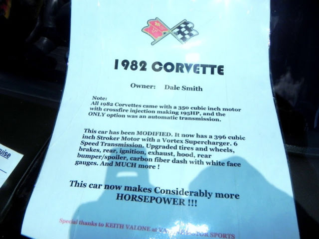 4 Bolt Main 350 block bored .060 over. 10-1 forged pistons, troked to 396 cu. in. 6 Speed Manual Transmission 625 lift-262 duration hydraulic roller camshaft Eagle forged Crank and 4340 H-Beam Rods All Pro aluminum cyl heads, .05 intake valves, .06 exhaust valves, ouble springs, corpion 1.6 roller rockers Elderbrock intake, 50 cfm quick fuel blow thru carb M.S.D. Distributer, oil, AL box. Boost timing controller, lugs, ires Moroso oil pan, reather tank and 1way valve cover fitting Aeromotive fuel pump and filter Vortex Super Charger with custom brackets and pulley set up. Running 7 lbs boost McLeod pressure plate, isk and flywheel Lakewood bellhousing custom welded to accept a ZF6 Corvette 6sp trans 1970 complete cast iron rear assembly, ross member, aft shafts and drive shaft, .73 gears with Eaton posi. With all poly mounting bushings, arrower rear fiberglass leaf spring to make room for the widened 10 in rear, in in front Gragar SS wheels and bigger tires, djustable rear strut rods. Chrome Hooker side exhaust headers White face Autometer gauges custom installed in REAL Carbon Fiber panels Custom 4 in Cowl Hood Custom rear Daytona bumper and tail lights Complete front suspension with poly bushings Stainless sleeved brake calipers This car is VERY FAST. Everything has been built right, verything works Small oil leak has develope, think at oil pan. All Hot Rods leak. Please call for more pictures and/or questions. Thank You, ale (239) 671-2378 bestacinc@aol.com Vette is for sale local, uction may end at any time See video at https://youtu.be/HYBvy4AUWH4 |