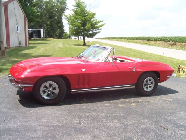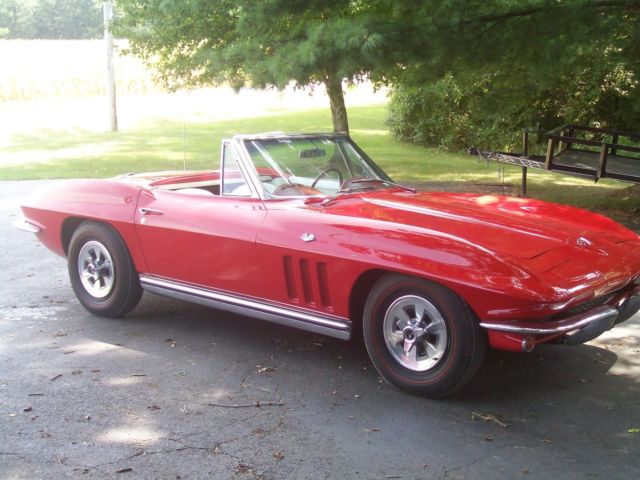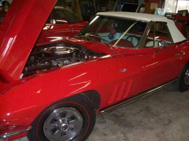 1965 Matching Numbers corvette UU Rally Red Roadster/White interior with Powerglide transmission, ew chambered exhaust, ew interior including door panels and red carpet,Am FM/Cd player aftermarket pioneer,newmaster cyld, wheel disc brakes,new batteryRRust free frame, ew dated top never seen a drop of water redline Michelins Gm original hubcaps,New eldrabrock Power plus intake and carb, ll original motor parts included with sale carb intake valve covers etc.car has won 4 Best of shows 2015, /p> On Dec-16-15 at 11:56:18 PST, eller added the following information: THIS CAR DOES HAVE POWER STEERING AND IS NUMBERS MATCHING AND IN GREAT MECHANICAL SHAPE |