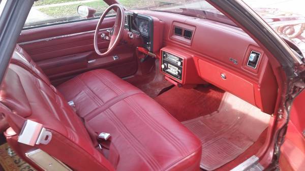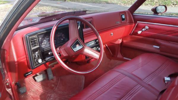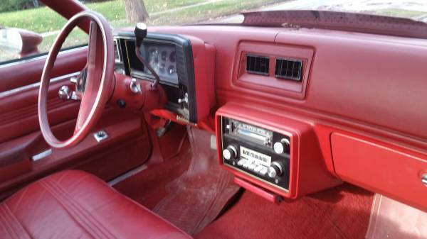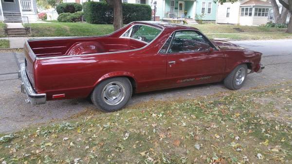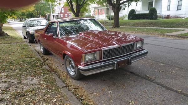 For sale. Original 1978 2 door pickup truck El Camino SS with a V8 350 4 bls. with 125,910 original miles. It has a bench seat with headrests, eat belts, nd the great additions that designate it a Super Sport including power steering, ower breaks, ir conditioning, emote mirrors, inted windows, M/FM radio with hidden antenna, 41 axle, ruise control, ilt sheering wheel, ody insulation, riginal floor mats, nd lots of other options. Very intact and original and would be excellent for a rebuild, estoration, r rod. At present this Elky is a very dependable daily drive. It has new repaint, ew radiator, ew heater coil, ebuilt air conditioning, ew exhaust, nd new tires. The interior and exterior are in great condition, o rust and i just had the body and tired aligned/balanced. It runs true with and the engine has many more miles on it, nd attacks the highway with no jimmies, o shimmies, nd no shaking. The pictures provide the best description. This El Camino was always carmine (According to the build sheet) exterior/interior. I really love this car, ut no longer have the room. This car had a very gentle, ural life in central Iowa and was taken very good care of through the years with garage time over the winters. You wont be disappointed with the drive as it gets a lot of attention. I have all of the original owner's paperwork that came with the truck manuals, arrenty info., uild sheet, in tabs, nd lots of other stuff. IF you want to see a copy of the built sheet, lease contact ask. I will consider offers.