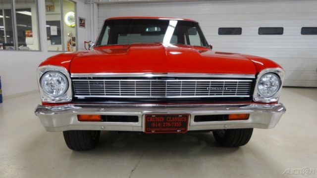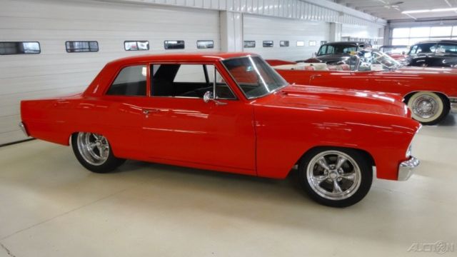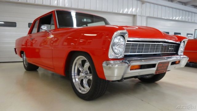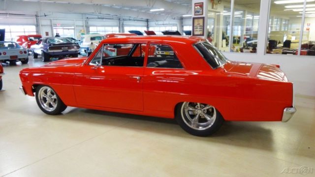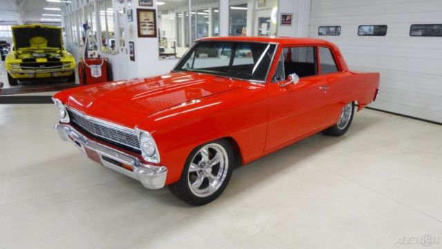 CRUISIN CLASSICSis excited to offera very high end build in the form of a 1966 Chevy ll loaded with all oftoday'ssought after features. New show quality PPG torch red base coat/clear coatpaint over laser straight sheet metal with excellent fit and finish.The look, ound and stance of this beautiful street beast is sure to satisfy all the desires oftoday'smuscle car connoisseur. With the look and sound of a full blown race car combined with the driver friendly features that make this hot rod very street able is exactly what everybody is looking for in modern muscle. ENGINE a 468 cubic inch pump gas motor,Holley 1050 Dominator carb on a Edelbrock PerformerVictor 454 aluminum intake. EdelbrockPerformer RPM aluminum heads, ild roller cam, oller rocker arms and stud girdle. MSD 6AL2 ignition box, SD coil with aMSD Pro billet distributor. Chevrolet chrome electric water pump drive, 1/8" ceramic coated headers with 3"Flowmasterexhaust. Chevrolet billet bowtie valve covers and air cleaner, ow mount 1 wire chrome alternator with billet brackets, QT kick out oil pan, uel log with all braided fuel lines and AN fittings, SD plug wires, arge custom aluminum radiator with polished stainless air box and dual electric cooling fans. Billet Bowtie radiator cap, olley electric fuel pump and regulator. TRANSMISSION 2 speed manual shift powerglidetransmission, 0 inch 3000 stalltorqueconverter, CI bandit shifter. REAR END Narrowed 9 inch Ford Posi with 350 street gears, eaf springs and competition engineering traction bars. BODY New show quality PPG Torch Red Base coat / Clear coatpaint over a very straight body with excellent gaps. 2 inch Cowl induction steel hood, ew front and rear bumpers, ew weather stripping. Finished trunk with battery mounted in rear, olished stainless gas tank. WHEELSPolished American Racing S spoke aluminum wheels Front- 17 x 8 Rear - 18 x 10 TIRES Front - Nexon N5000 P215/50R17 Rear - Nitto Extreme Drag 305/45R18 This beautiful street machine is a very high quality build with only the best parts professionally installed.You would spendwell above our asking price to duplicatea car of this caliber, r you can save yourself thousands of dollars and months (maybe years) of aggravation bypurchasing this turn key ready Classic and start enjoying it tomorrow.Thank you from all of us at Cruisin Classics The sale is subject to the following conditions and representations This vehicle is being sold as is, here is with no warranty in connection therewith. The seller shall not be responsible for the correct description, uthenticity, enuineness, r defects herein, nd make no warranty in connection therewith. No allowances or set aside will be made on account of any incorrectness, mperfection, efect or damage. Any descriptions or representations are for identification purposes only and are not to be construed as a warranty of any type. It is the responsibility of the buyer to have thoroughly inspected the vehicle, nd to have satisfied himself or herself as to the condition and value based upon that judgment solely. Seller assumes no responsibility for any repairs regardless of any oral statements about the vehicle. |