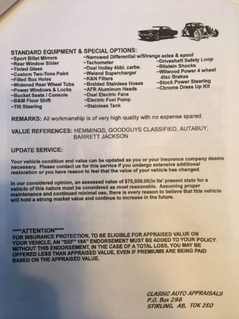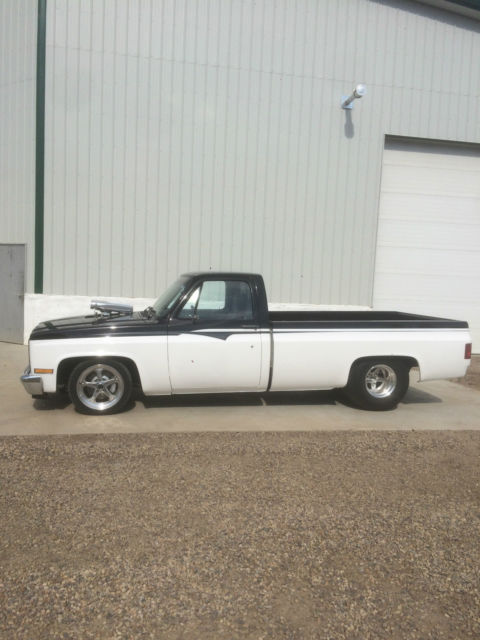 Professionally built race truck/strip truck, ppraised at $75000.00 Built by a certified NHRA welder and racer also into tractor pulling. No expense spared on this vehicle. Super charged 383 stroker with RHS heads, win 750 AED carbs, SD ignition, rapped dougs headers, lectric water pump and dual electric cooling fans, ynoed at 546 RWHP. Flaming river collapsable steering coloum with tilt. Transmission is professionally built TH400 with reverse shift pattern and trans brake, &M street bandit floor shifter, onnecting to a Gear Vendors overdrive. Drive shaft with loop connecting to Chris Alston FAB9 rear clip with posi 9" rear end and strange axles. Body work was extensive to fill in the body seams, take pockets in the box, ubbed rear wheel housing using Chevy parts to look factory. Centerline racing rims with M/T tires. Brakes are SSBC 4 wheel disc brakes. All new electrical, oses, olts, uts, asteners. New glass. Very fast truck and a real head turner as well.