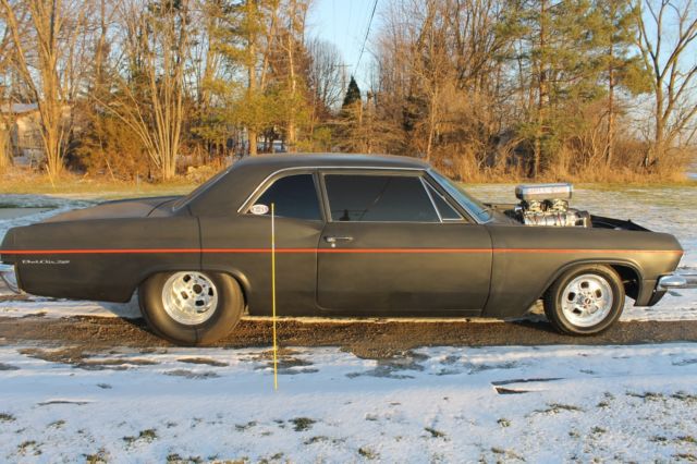 I am selling a 1965 Chevrolet Pro street Bel Air/150/210/Impala. Big block chevy 454 with blower, luminum heads... best of everything in the engine. Dual Holley 4-barrel carbs, urbo 400 transmission with reverse manual valve body. 3500 converter. 12 bolt 4:11 rear end. Craiger wheels. Mickey Thompson sportsman rear tires. Real nice solid body except for the bottom of the drivers front fender. The wheel tubs and narrowing of the rear end were done professionally, ery nice work. This car is VERY FAST and strong running with very low miles on the motor. I am selling this car for a very close friend of mine who is ill. Call with questions, sk for Bill at 810-252-9194. Reserve and buy it now price are the same. |