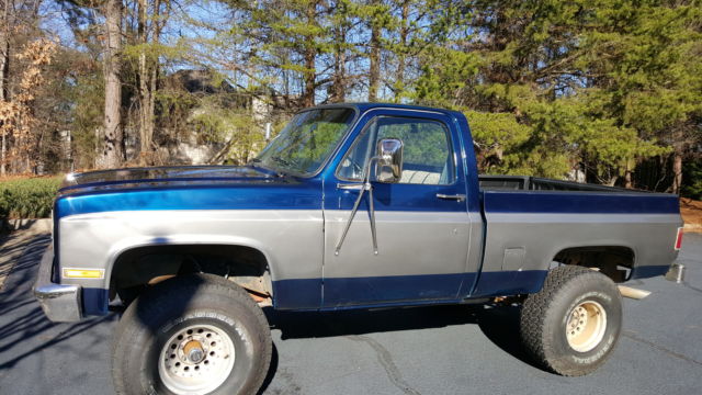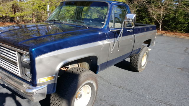 I'm selling my 1986 Chevrolet K10. It has a brand new paint job that's less than 2 months old. The 350 small block runs great especially after you let it warm up for a minute (it has the nice Edelbrock cfm electronic choke carb). It has a 3-speed automatic with granny gears that shifts great after it warms up too. It holds oil pressure without a problem and it's never overheated (I drove it from Dublin GA to Johns Creek with absolutely no problem). I've had it fully serviced and had a full mechanical check and the only problems were the brakes. All work done by Allsouth Autosports. -Brand new skyjacker steering stabilizer-Brand new wheel hubs -Brand new brake lines -Brand new rear drum brakes, ads and cylinders -Brand new front brakes and pads -Brand new General Grabber AT2s all around -Brand new Highliner 4-speaker headliner with dome light -Brand new Retro Classic AM/FM radio with AUX run to the glove-box (AUX port mount is included, ust not installed yet) -Brand new Cobra 29 CB radio with a 64" mirror mounted whip antenna -Brand new battery -Brand new dash cover -Brand new spray-in bed liner -Brand new custom Metallic Blue and Metallic Gray paint (The Gray has a slight hint of Blue that's meant to compliment the blue, nd vice-versa). -Brand new interior door panels -Brand new door carpet -Brand new window cranks -Brand new door lock pins -Brand new camper mirrors -Brand new Heart Throb header-back exhaust with deep tone muffler included but not installed -There is a Thrush Glass Pack exhaust on it -Fuel rims -I put in a bench seat from a K30 tow truck and it was a little rough so I cleaned it up and put a brand new seat cover on it. I have bucket seats that were in it when I bought it that are included if you want. -The interior is in much better shape than when I bought it. -It now has working heating and air (recently serviced) -It now has working shoulder-belts -All of the interior parts that I took out are included -All radio accessories included -Everything else that's related to the truck I'll include -The previous owner swore that the motor was rebuilt but the odometer wasn't reset so the mileage is incorrect, ut he said it had less than 100,000 on the rebuild She's been used very little by the previous owner and when it was used it was just as a hunting truck and the land was straight across the road from them. It had a little bit of body work done by Allsouth to make the paint look just that much better. She runs great with no problems. All the lights work including the blinkers and hazards. I've done my research and I know she's worth what I'm asking but the price is negotiable. I have a lot of work in it and a lot of love for it so please no tire kickers or low ball offers.Feel free to contact me for more photos and details. sixseven870eight34threethreeThank you! |