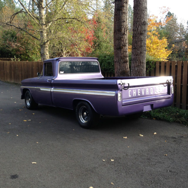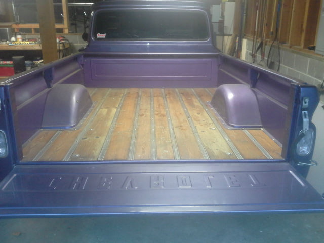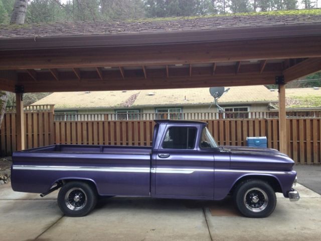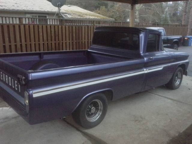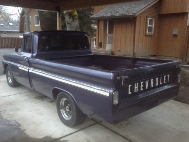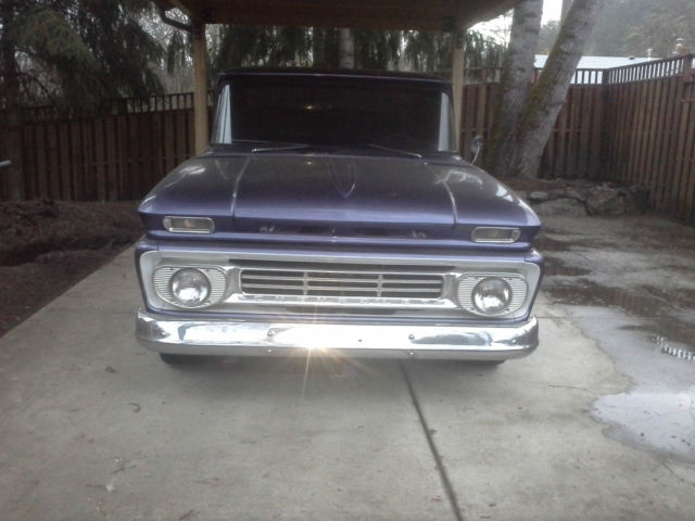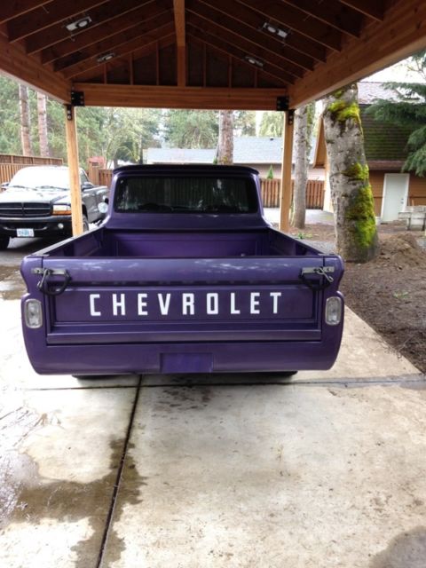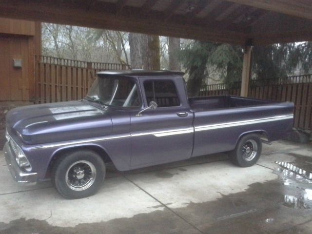I bought this truck in 1997. It is a 1962 Chevrolet C-10 2WD long box. Truck body was taken off of the frame three years ago. Frame and bottom of cab were cleaned and sprayed with undercoating. Truck was then repainted and reassembled. Engine is a crate 350 with heads casting number 14102193 (4 bolt valve covers) bolted to a th350 automatic transmission. Truck has Edelbrock 1406 carburetor with performer rpm intake, s well as a Milodon oil pan. Mileage is unknown on motor/trans as I bought used but it does run great and sounds great. Recent compression test showed 150 psi on all cylinders. Interior seat was redone. It also has new chrome on the truck body. Tires are Toyos, 75/60/15, t about 75% tread. Truck has a clean and clear Oregon title in my name. New/replaced since I've owned the truck:Clear taillightsTaillight bezelsTailgate chainsReplaced bedwoodStainless steel bed stripsWiring harnesses-from firewall to taillights-from firewall to voltage regulator-from firewall to alternatorNewhouse driveshaft, ut and balancedBrake shoes, ront and rearTrack bar bushingsTrailing arm bushingsCab mountsRadiator core support mountsMaster cylinderVoltage RegulatorHornHorn relayB&M ratchet shifterTransmission shift kitTorque converterShorty Headers2.5" exhaust and mufflersBattery (one month old)Battery cables, ositive and negativePower steering kitPower steering boxSteering rag joint kitDoor weather strippingDoor seal platesSeat reupholsteredRubber floor matBedside chromeTailgate decalsDriver mirrorWindow tintWelded on roll panHeater knobs and leversUsed HEI distributor with new plug wires and weight/spring advance kit Things the truck could use are:Horn button fixedGas pedal installedWiper switch badFuel gauge does not workAlignment due to new power steering kitDoors are hard to shut due to new weatherstrippingPaint is not perfect would say a 6/7 out of 10 but truck is straight. Has a couple paint chipsNeeds window felts redoneBed wood could use reclearedNo stereo/antenna Small leak from transmission panWindshield scratched from wipers Aside from the few items listed above, t is a great truck that needs very little to be a nice daily driver, ruiser or even a show truck. If you have any question you can contact me on ebay or call me at 541-280-8597. Truck is being sold as is with no warranty of any kind. Buyer is to pay shipping costs |