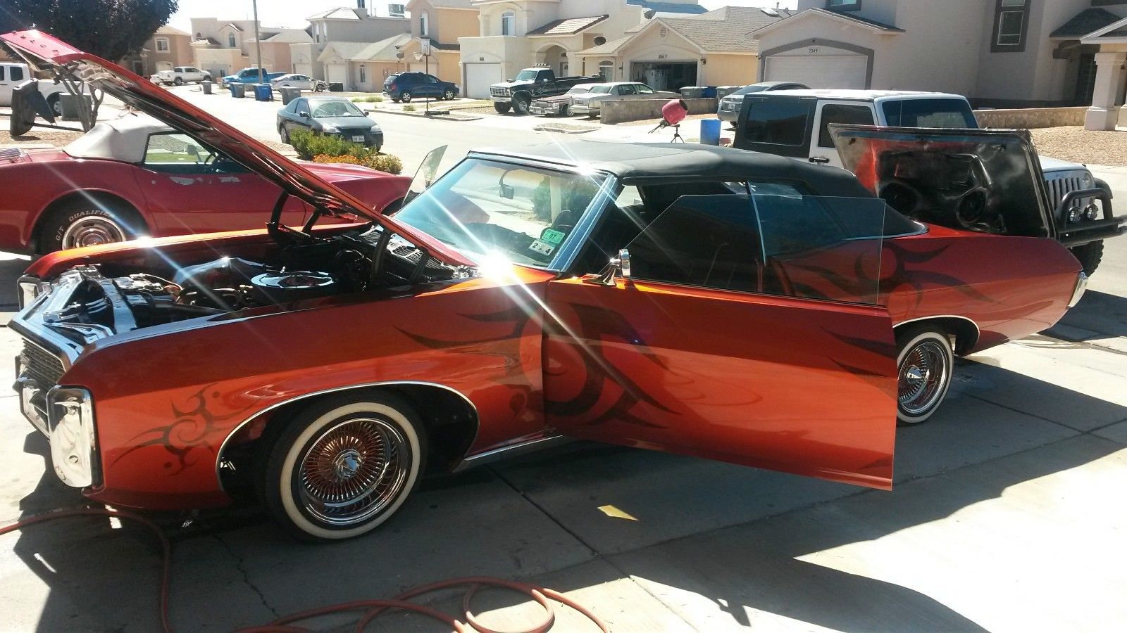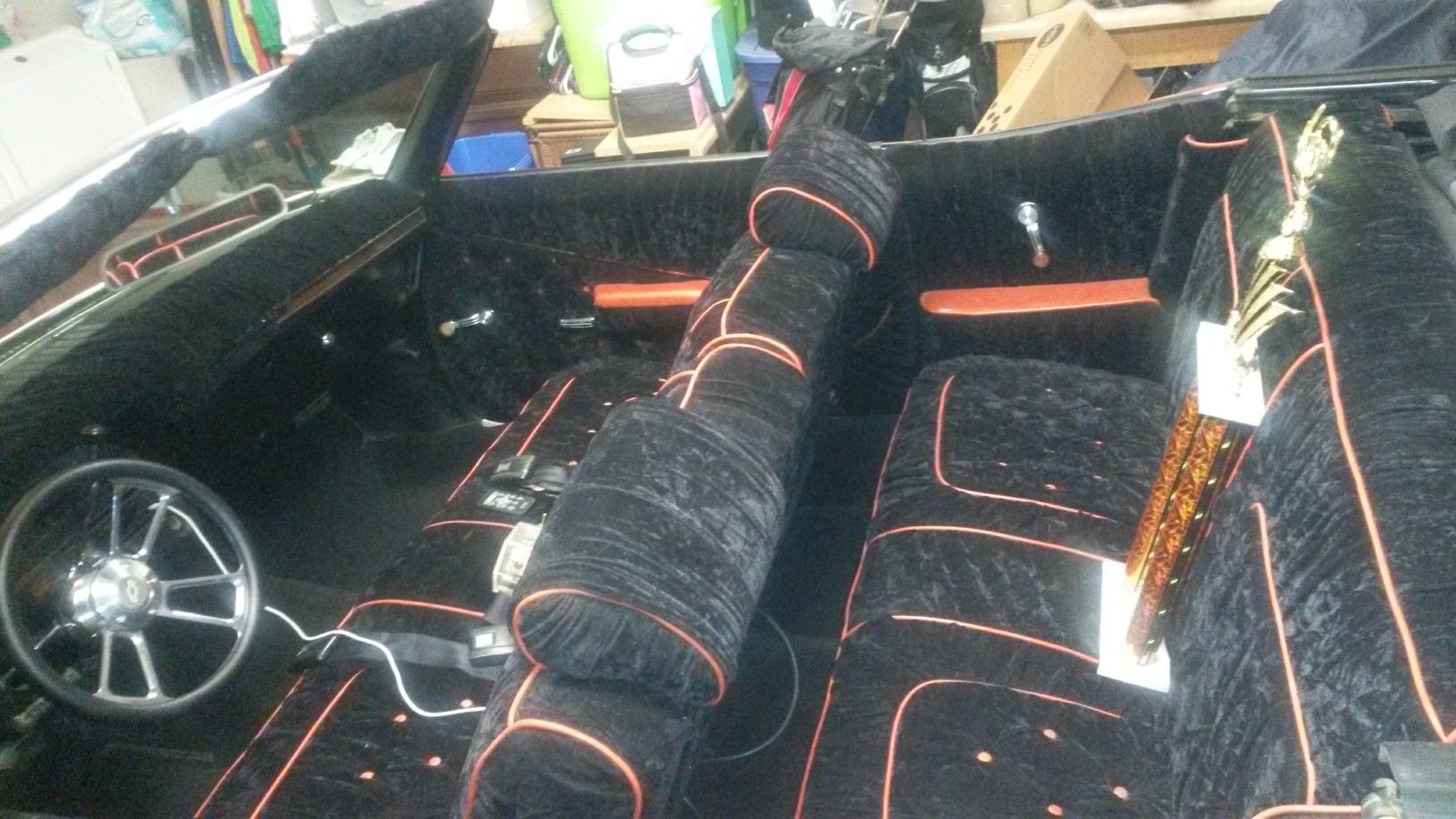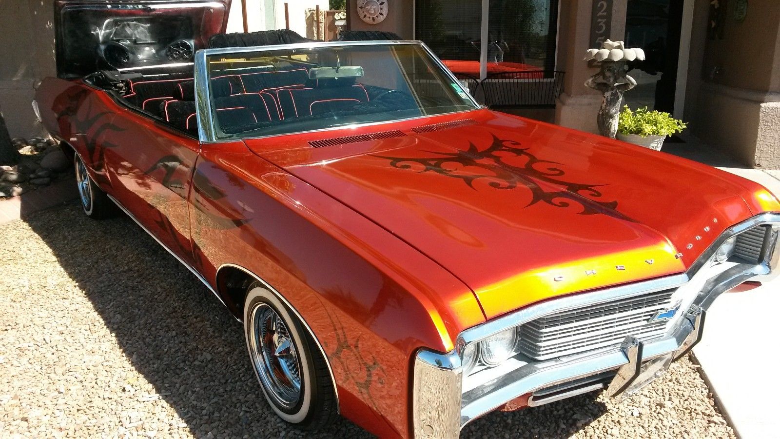 | THANKS FOR VIEWING THIS 1969 IMPALA CONVERTIBLE. CAR RUNS AND LOOKS GREAT. EVERYTHING IS CUSTOM AND TURNS ALOT OF HEADS ANYWHERE YOU GO. CAR IS GARAGED ALWAYS. I AM IN EL PASO TEXAS. IF YOU WOULD LIKE TO SEE THE CAR IN PERSON TO INSPECT IT AND APPRECIATE IT IN PERSON JUST GIVE ME A CALL SO I CAN SHOW IT TO YOU. I HAVE LISTED MANY PICS IF I AM MISSING SOMETHING OR YOU NEED MORE INFO PLEASE DONT HESITATE TO ASK QUESTIONS I HAVE LISTED MY DIRECT NUMBER SO THAT YOU MAY CONTACT ME . BUYER TO PAY A $500. 00 DEPOSIT AT THE END OF SALE. AND THE REST WITHIN 7 DAYS CASH OR CASHIERS CHECK FROM BANK JUST INFORM ME OF WHAT YOU WANT TO DO I WILL WORK WITH YOU. BUYER TO PAY FOR ALL SHIPPING COST OR CAN PICK UP IN PERSON. I WILL CORDINATE WITH SHIPPER AND MAKE MY SELF AVAILABLE TO HAVE CAR PICKED UP. CAR IS SOLD "AS IS". NO GURANTEES OR REFUNDS. PLEASE MAKE SURE TO HAVE FINANCES IN ORDER BEFORE BIDDING ON CAR TO ENSURE A SMOOTH SALE. I HAVE INCLUDED NEW PICS OF THE CAR INCLUDING PICTURE OF TROPHY I WON AT A LOCAL CAR SHOW SUNDAY THE 23 OF NOV. (915) 694-2765 RICHIE (915)-219-6412 |
