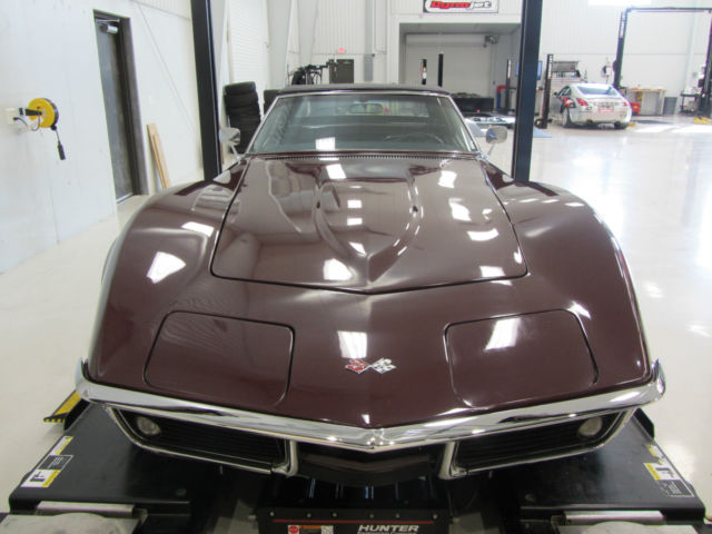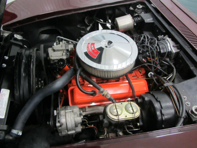 Numbers matching 327-300 TH400 Automatic, ngine has original smog pump, xhaust rails and original metal fan cowl. 61,200 original miles. Climate controlled garage kept for the last 18 years. Interior restored with new carpet, ash, oor panels, eat backs, eather strip seals and console. Seats are original leather in excellent condition no rips or obvious wear. Steering wheel is original rare simulated wood. Side glass(power windows) are excellent "Astro Ventilation" Front windshield is new and flawless. Not date coded and would be an NCRS point deduction. Top is excellent 8 years old and again not date coded another NCRS point deduction. Clear rear window. Wheel covers are Rare P01 option in good condition. Vacuum wiper door and headlights have sporadic operation. Lights and gauges operate. After market radio not operating. |