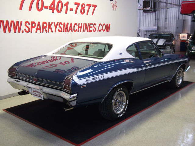 This is a very rare, ully restored 1969 Chevelle 300 Deluxe two door sedan. This car has been completed just a few years and been driven very few miles. Take a look at the following features: • Merlin 509ci block (600hp) • Hughes Heavy Duty TH350 automatic transmission • Capable of handling 650ft. lb. torque • 3000 stall converter • 4340 steel crank and Manley rod • Wiseco forged pistons 10.6 comp • Moroso Blue printed oil pump with 7 qt. pan • Edelbrock polished rectangle heads • Super Victor intake • GM electronic distributor • 2 core aluminum radiator • GM serpentine belt system • 850 Holley carburetor • HEI ignition • Power steering • Power front disc brakes • New wiper motor • Original Parchment replacement interior • 6000 RPM gauge cluster • Tilt steering column • Factory AM/FM stereo in place • Custom Kenwood AM/FM/CD added below the dash • Gen IV Vintage heat and air system • Near flawless exterior Diamont base/clear finish • Special 300 Deluxe stripes • Premium White vinyl top • SS hood • New front and rear windshields (tinted) • New bumpers and brackets • New front fenders and deck lid • 12 bolt posi rear with 3.31 gears • Polyurethane bushings and ball joints • Station Wagon coil springs front and rear with Hotchkis sway bars • New dual exhaust with 2 ½" pipes from the headers back • New splatter painted trunk space with clear coat • Spare with cover, ack and wrench • New Rally wheels with radial tires 235x15 front and 255x15 rear This car has been meticulously built by a professional of 35 years. You will be amazed at how great this car drives. For more information please contact Steve at 770-401-7877 or at sparkysmachines@comcast.net |