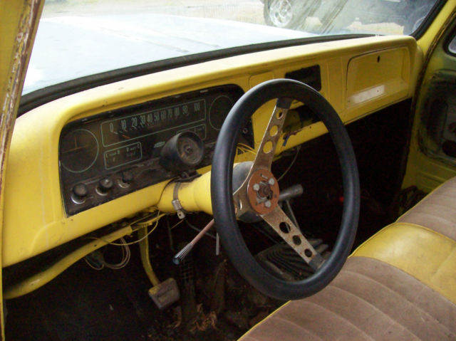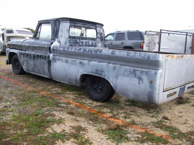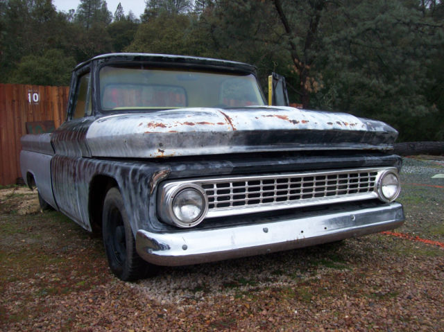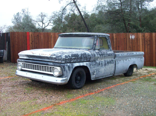 Must sell please read all of the add. The rust is so minimal maybe 1% thats a big deal as it is very expensive to fix. Mechanical is easy and a do it yourself,but body work and rust for most every body is a expensive item. 1-1966 long bed..bed floor was removed for air bags.tailgate smoothed but opens and closes-stake pockets and rear lamps removed. door handles removed just inner handles needs poppers--rear lower custom pan ready for your tail lamp choice. nice dash not cut up-all cab glass is good. rt door glass needs run channel blocked up to keep water out-hood signal lamp openings smoothed off-very decent front bumper and grill---Body in general looks straight-very very minimal rust in left drivers side floor-rt inner door opening- rt fender rear lower-roof and gutters are great-doors open and close well-decent front seat-fuel tank removed NO TANK in the truck I have ran off small can .I am in process of adding bolts to bolt bed down completely as the bed was removed prior there are no issues just needs new bolts and will be done prior to buyer pickup. 2-stock drum brakes with solid pedal-12 bolt rear do not know if a posi or gear ratio-needs new coil springs on all corners-tight stock steering-has 14 inch aftermarket painted alum wheels 6 hole pattern-frame looks good- 3-327 v 8 with camel heads-small cam-alum intake with carter type carburetor needs rebuild-motor runs well when warmed up good oil pressure and temp-turbo 400 with b&m shifter cable is stiff-goes into forward and reverse- oils look good-correct drive shaft- Nice rust free Rat rod Pickup will take little to get roadworthy. Clean current California Pink Slip.....................no back fees...........current tags!!!!! will help load......... email all question reserve right to end auction any time US buyers only Thank You |