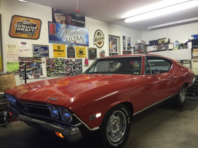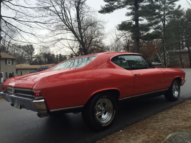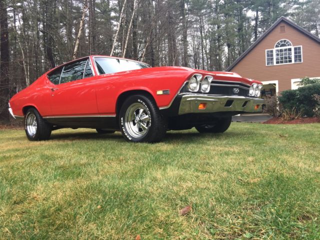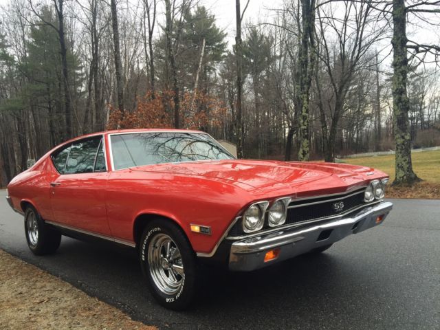 1968 Chevelle SS. 396 /325hp TH-400 Auto, IN# 13, ot original motor but year correct 68 396/325hp TO4I9IG / Y218563, motor sounds and runs great along with no fluid leaks.  Rochester carb, ith working auto choke, eaders, resh flow master mufflers, hevelle SS exhaust chrome tips Power steering, pgraded with complete new front disc brakes system along with Drilled & slotted rotors, backing plates and all fresh new brake lines, ar stop on a dime, lso front end upgraded with lower  Hotchkis suspension, ar handles and performs great two nice quality upgrades, ear end 12 bolt 3:23.1 gears. This is Rare factory Bench seat auto on column, ith  factory tilt steering wheel, actory correct am/fm radio currently not working, factory working A/C, actory tinted glass, our T-3 headlamps. Car comes with complete spare tires and jack assembly, he interior shows like new, eadliner, oor panels dash cluster, arpeting, nd seat upholstery very nice all working dash lights interior and glove boxes lights. Car is rust free no signs of any bubbling rust or dings on any body panels. Paint code correct R2 very shiny Matador red detailed very nicely paint shows very well, ody is lazer straight with all great body lines and gaps, oors shut great and very tight, ll window glass is also in great shape and alignments, Interior color Black bench seat car factory code 765. Prior history is known as being Purchased new from Reedman Langhorne, A, nd still on vehicle, his Chevelle resided in Pennsylvania up to 2002 prior to shipping New England now in NH. Car being offered with choice of wheel, intage F-70-14 Mickey Thompson red-lines mounted on corvette rally', ncluding spare tire also red line, Or Brand new BF T/A radials 225/70/15 also on new corvette rally', hird set currently on car is vintage classic Cragars SS mags fronts 235/60/15 rears 255/60/15. Reserve is best on winning bidder choice of one set, additional sets would be sold separately best on interest. This Chevelle is very clean having great body lines and alignments all as good as factory, aint and trim work in very nice and in top  quality condition. Second time listed and the car was very close to reserve, hanks for all the positive feed back. I have this vehicle listed locally and reserve the rights to end auction at any time with serious buyer and without notice. I have a direct contact with local a transport company enclosed shipment, will work out arrangements with winning bidder and or buyer at a discount rate. Feel free to contact regarding any questions, appy bidding 603-583-0024On Jan-23-16 at 13:19:31 PST, eller added the following information: