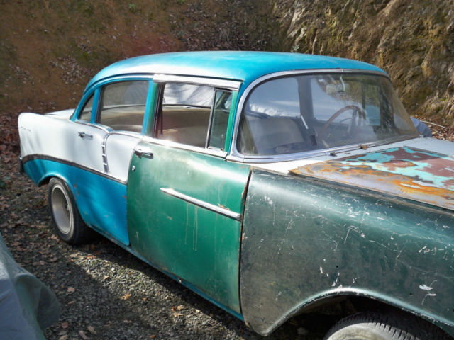 Clean 1956 chevy 4 door....Have period correct engine. Please look at all pics and ask what questions you need to know... very rust free. has 3 speed O/D that goes with it..The green door and fender have some rust.. but very little.. The door and fender were sold before I got the car.. One to many projects.. This one is going to go.. The reserve is not much..Please look at pics for what goes with it.. The pass door has no window in it.. The green door and fender are just hung on car for transport. and pics. This cars original headliner is still in it.. The dash looks great.. all the heater controls work free and feel good.. The brakes have had work and also feel good.. What a great 60 year old car... Thanks for looking.. SteveOn Jan-26-16 at 15:43:42 PST, eller added the following information: I just noticed the pic of new starter, lywheel, lutch, nd bell crank, idn't;t show in pics.. but they are there.. |