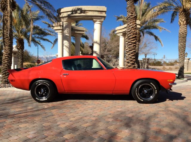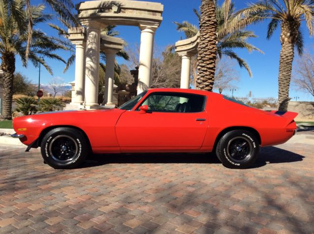 1971 Chevrolet Camaro Rally Sport "Split Bumper" Restored The car is powered by a 350cid V8 connected to a 4-speed manual transmission with Hurst shifter. Holley carb,10-bolt rear end W/Sway Bar and Flomaster Dual exhaust.This car runs and drives Very Nice, tarts right up every time... Very Very Reliable... Can Be a Show Car or Daily Driver. The Beautiful new Red Paint and Black Rally Strips make the Car a for sure head turner.Plenty of power Fast And Loud "But Owed and Driven By A Sweet Lil Lady"Garage Kept, ure Beauty and A/C Works as well as the Heater... Any Further Questions Give me a Call or Text (702) 308-6880 "BILL" "Also only 3 Miles from the Las Vegas McCarren International airport" Proud Private Owner With Clean Title in Hand. |