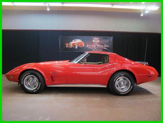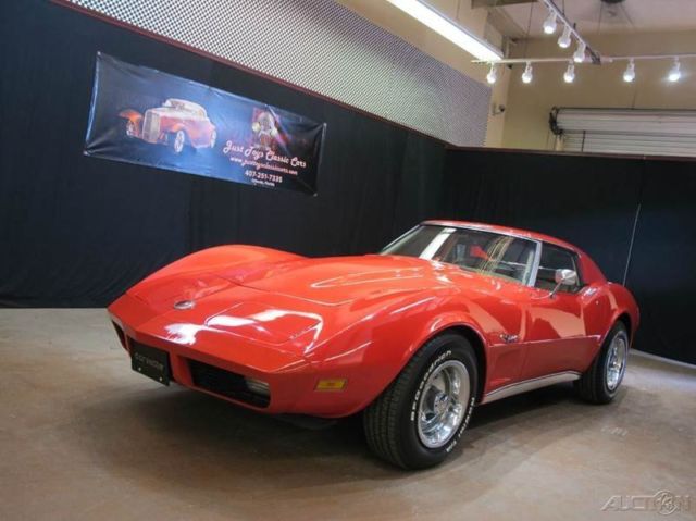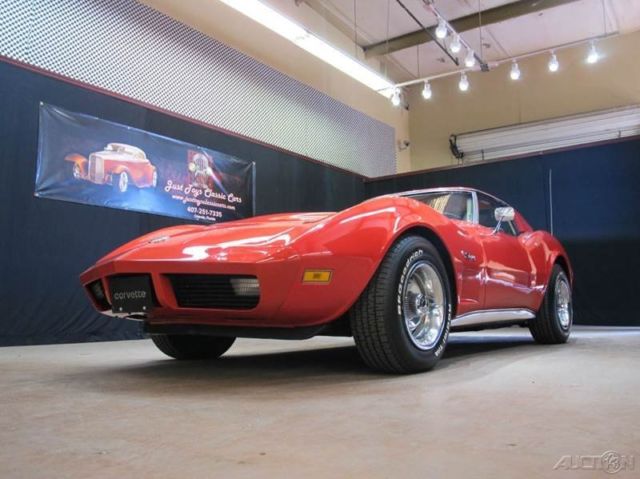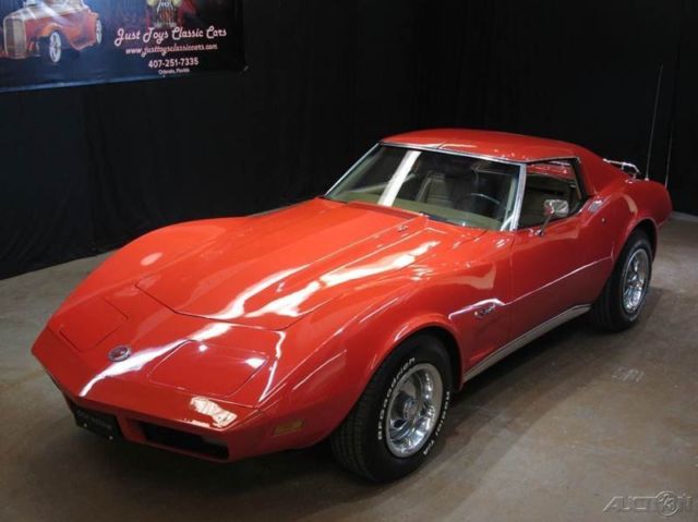 Just Toys Classic Cars is proud to present and absolutely beautiful 1974 Chevrolet Corvette. Yes we know that this is a rubber bumper era car, ut this car is stunning from tip to tail and loaded with just about every option that you could get on it. These were still heart thumpers in peoples eyes. Yes the days of 500-600 HP from the factory were gone, ut this car still had 270 HP with this motor under the hood. That will still efficiently get you from A to B. The body lines on this car really are second to none and with this color just make you want to jump in, nd look for that horizon to take you where ever you want to go. The paint on this car is miles deep and just looks like a beautiful lipstick red. The interior of this beauty is equally as nice. You will not find any rips or tears in the seats, ash or carpet. Everything is in really good shape. This is a car that you just slide in to and get ready to drive. It is very comfortable and everything works in the car. The clock even works, ut the second hand does not. This is one of those original cars that has not been cut up and chopped up with cheap aftermarket radios. This is just an original car with one respray on it. Now under the hood is where everything still happens. This car has the 454 option on it. There was still a pretty decent 270 HP under the hood in 1974. No not the monster horse power of the late 60's, ut still pretty respectable. This car is still under the century mark for miles and has power steering, ower brakes, /C, nd even power windows, nd tilt/telescopic wheel. We have said it before and will say it again, utside of a 4 speed this car is absolutely loaded. That 454 is matted to the original transmission and rear end. This is a numbers matching car that you should be proud to have in your collection. We offer classic car financing for those that would like to take advantage of the option. They have great rates and terms and allow you to pay off the car when you want to. We are way below the money on this car. There is still plenty of meat on the bone for the next person that buys this. Keep it nice and these cars are going nowhere but up in value. Just look at the numbers below. Low Average High Retail Retail Retail Base Price $6,082 $12,500 $17,700 $28,100 Options: (change) 454 V8 Engine 25% 25% 25% Factory Air Conditioning 10% 10% 10% Power Windows 2% 2% 2% Power Steering 12% 12% 12% Tilt/Tele Wheel 2% 2% 2% TOTAL PRICE: $6,082 $18,875 $26,727 $42,431 JTCC PRICE: $35,995 SAVE: $6,436 1974 Chevrolet Corvette T Tops 454 Automatic PS PB PW AC Tilt/Tele Wheel AM/FM