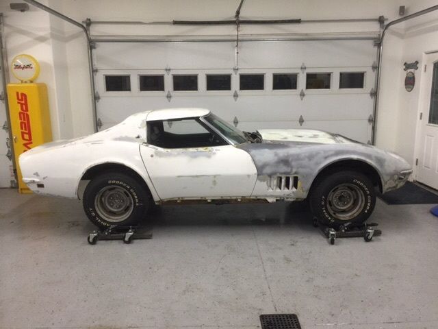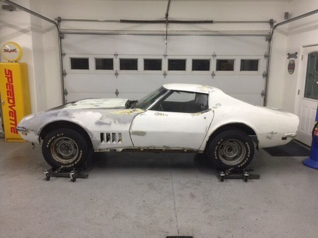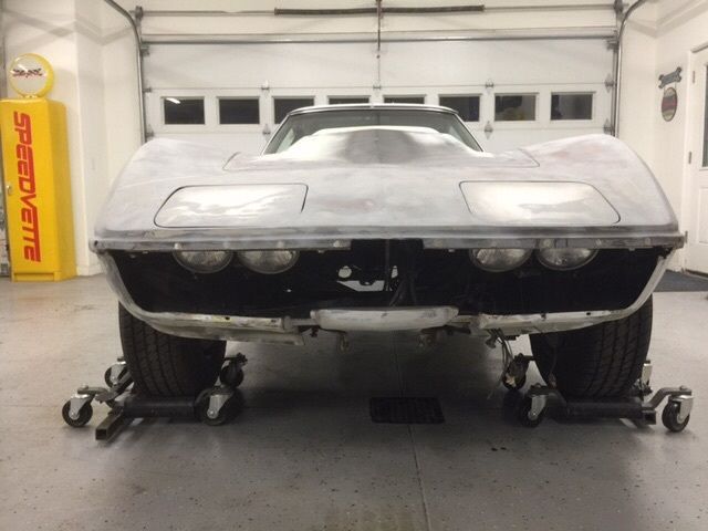 1969 Corvette Coupe The original color is Daytona Yellow with Black vinyl interior. The frame is very solid. This car WILL NEED COMPLETE RESTORATION. It does not have a motor or transmission. It was a small block automatic car. The body is in good condition. Someone started stripping the paint off. It came with air, ower windows and tilt/tele column. This car rolls around but will need to be trailered home. Car must be paid in full within 7 days of end of auction. This will need to be picked up within 4 weeks of end of auction or you will lose your money. I need the space in my shop otherwise I would not be selling. I am also selling a 1972 Corvette convertible project car. Check my other auctions. Email me with questions prior to bidding.