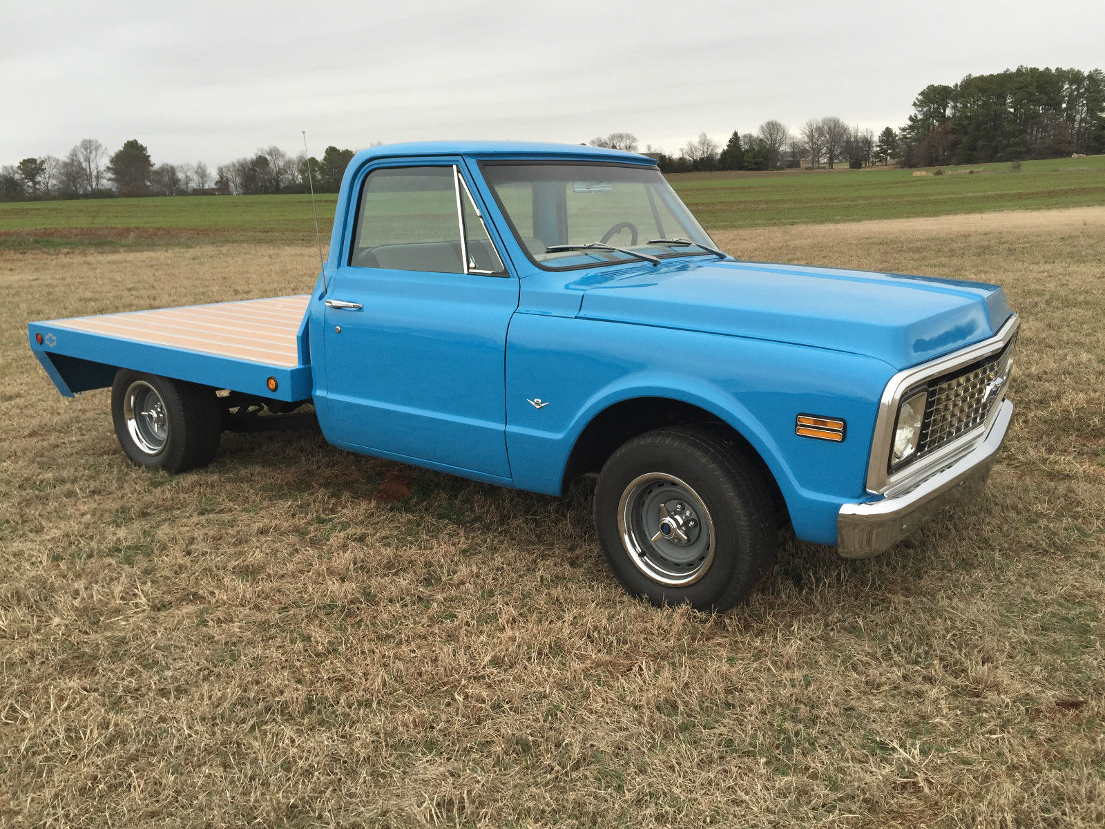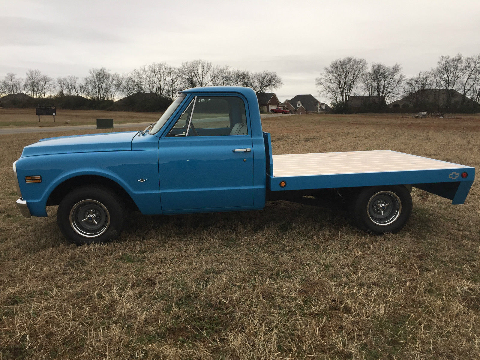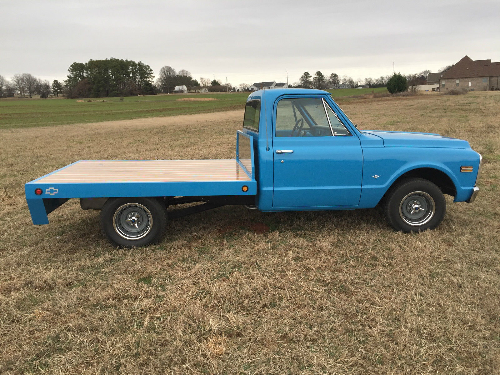 | 1972 Chevrolet C10 Cheyenne Super. Original 350 4 bolt main engine totally rebuilt 30 over with small cam for sound. Magna flow exhaust. Automatic overdrive transmission 4 speed (not original). Original driveshaft fit perfectly with transmission. The transmission is a common trade out in this truck to get the 4 speed instead of the 3 speed. 4 barrel Holly carb (new). No shortcuts taken on restoration. All body work done was pulling dents out and no bondo. All seals around window and windshield are new. Basically everything is new on truck. Axels completely disassembled and restored with new seals. Really anywhere that holds fluids has new seals. New disc breaks on front with new calipers. Drums on back restored. This is full frame off restoration. The truck was completely disassembled restored and put back together. If bolts were holding something together then it was taken apart. No rust on the truck. Factory heat and air also restored and moved to give more access and view of the engine. Flat bed is solid oak planks. Truck was bought new by a man in Cullman Alabama where it was used as farm truck. It probably never went above 50 mph until after it was restored. The man gave the truck to his grandson who then restored it. This truck cranks. rides. and drives like a new car. I don't want to overstate the quality of the restoration but it is very well put together. The only real flaws I have found are the fact that the hood and doors are a little tight probably because it has new rubber all the way around. It has a little bit of wind noise coming in from the drivers side window where it appears the window isn't quite fitting into the weather stripping just right. Also the truck does not have a horn. The AC is cold and the heater is hot. This truck was originally a short bed. fleet side. olive green color with the cheyenne super equipment group. A truck with this level of restoration with a short bed would easily be worth $19. 00 to $24. 00. You can buy a fleet or step side bed new and have it painted and installed for around $4500 if you really wanted to but I really like the flat bed. there aren't any out there like it ! I have perfect feed back and have sold about a dozen cars on ebay. I want you to buy my truck but not at the risk of ruining at my reputation. I will be glad to answer any questions you may have if you will give me a call @ 256 508 4722. my name is Robert. I always recommend you have any vehicle inspected if you can't look at in person so I will be glad to accommodate any requests for third party inspections and if any major issues are found that I haven't described I will be happy to refund your inspection cost. This is an Alabama truck so per state law it will be sold with a bill of sale only as Alabama doesn't issue titles to older cars. I have sold cars to Florida. California. South Dakota. Georgia. and several other states with no problems but feel free to check with your local title clerk to verify. I will include a ton of pictures and several videos to help show the truck as acuratley as possible but if you want any specific pictures please call. Thanks. and have fun! check out the videos |