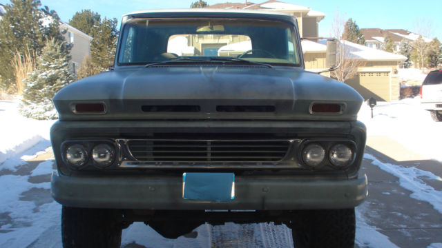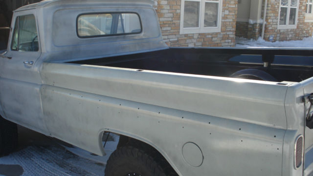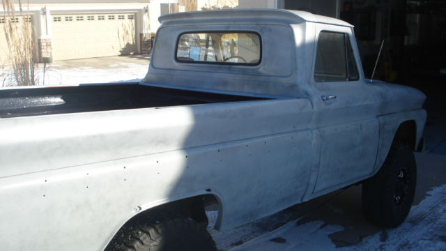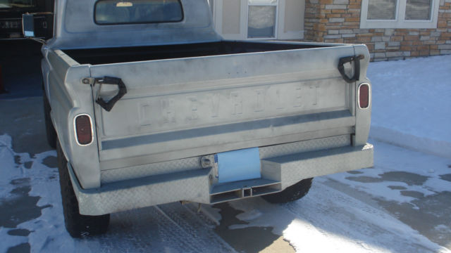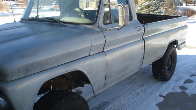 | Up for sale is a 1966 Chevy K20 4wd pickup. Truck was originally equipped with a NAPCO 4wd. Now it sits on a 1984 Chevy 1 Ton chassis. Runs great. Has a 400 small block engine set up with a 1986 L98 Tuneport fuel injection backed with a turbo 400 automatic transmission. Truck has heavy duty axles (Dana 60 and 80) with 4.88 gears and disc brakes. 4WD works great. The in cab fuel tank has been replaced with a 32 Gallon tank mounted under the bed. Extra set of wheels. Truck has been epoxy primed in anticipation of body work and the inside of the bed was painted black. Has a steel plate over the original wood bed. Has the usual rust spots around the rear tires, ab corners and drivers floor. This is a beast of a truck. |