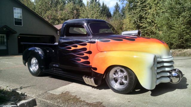 Want to be noticed at the car events? This truck will really get you there. Start this truck up and it will draw a crowd immediately. Radical idle from this motor will bring them running. Motor is a 1000HP 540 inch Chevrolet with Arias aluminum hemi heads, 71 Littlefield blower, ilborn electonic fuel injection. Built Turbo 400 trans. Trans is cooled with independent radiator with fan of its own. All lines are braided stainless steel with AN fittings. Nothing but the finest parts used. Build cost $140,000.00 Features include: Top chopped 4 inches, nbsp;leather interior, lectric windows, ir ride in the front, isc brakes front and rear, lassic gauges, ilt power steering, lectric hand held remote door latches, irbrushed wood grain bed floor. The hood is pie cut to lower the front bubble slightly. Underside of fenders, ickup box, ood, tc. is gloss black the same quality as the exterior paint. The body and paint is absolutely perfect with laser straight sheetmetal. Tailgate is moulded in and is solid black like the car. The picture shows a reflection. This truck is extremely fast and not for the fainthearted, ut if you are into raw brute horsepower, all me. 503-703-6601. I would consider a trade up or down for a C1 Corvette.