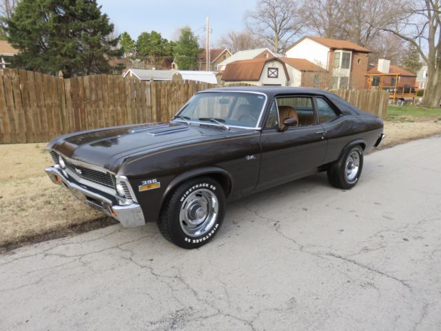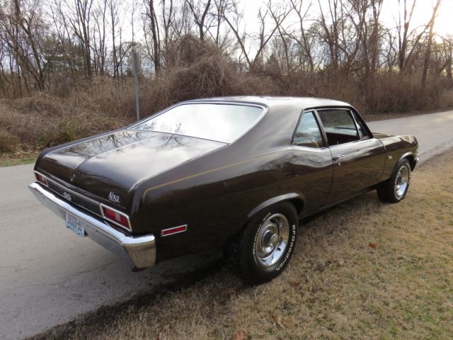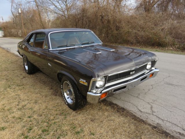 1 Owner Midnight Bronze True K Code 72 SuperSport Nova with Super Low Original miles..Born a 350SS but has a 72 Date Code Correct CLB 396 Big Block and 400 Turbo Rebuilt by TPS Performance "Have Receipts" with less than 2000 Miles and Sounds Great with 850 Holley Double Pumper, delbrock Aluminum Intake, SD Ignition, igh Energy Cam, ig Tube Hooker Headers, yno/Max Dual Exhaust, &M Shift Kit, urst Ratchet Shifter, 2 Bolt 3:73 Posi with New Rear Multi-Leaf Springs and KYB Shocks, ll Original Tan Bucket Seat Interior with New Carpet, ally Wheels with New Tires, Repaint back in the 80's "Correct Color" that still looks good for a driver but has a little Rust in front of back tires and a couple bubbles on edge of hood "See Pics." Easy Resto or Enjoy As/Is.. has Perfect Gaps and Doors, ood, runk shut like New, as Power Front Disk Brakes, his is a Well Documented 1 Owner True SS and I have the Original 1 Owner Title, rotecto Plate, wners Manual, riginal Purchase Agreement and Receipts for Rebuild on Motor, uns Strong and Drives Tight.. Feel Free to Contact Chris @ 314-795-7355 with Any Questions or Concerns Prior to Bidding! Selling As/Is!!