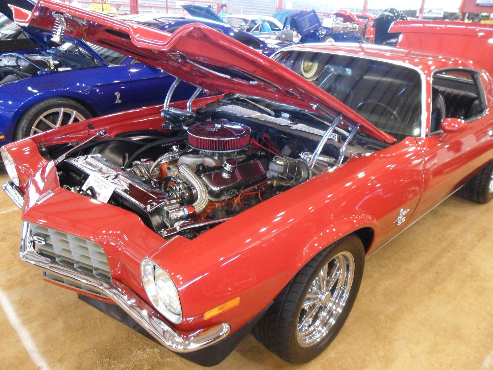 | GREAT MUSLCE CAR 1973 Chevrolet Camaro SS. Here you go gang. this is one sweet ride. This bright Red with black vinyl bucket seat interior and full console with correct Staple Shifter is powered by a fresh rebuilt 1969 396 Big Block with a Turbo 400 transmission and a 2. 73 rear end for highway cruising ease. The brakes are 4 wheel discs with cross drilled rotors. the engine bay is detailed with lots of chrome and billet aluminum pulley system including polished air conditioning compressor. lternator & power steering pump. nbsp;MSD HEI. and a Holley 650 cfm 4 barrel on top of an Edelbrock Performer intake. The wheels are polished 5 spoke with 265/50ZR17 blackwall radials on the rear and 245/45ZR17s upfront. Four core Polished heavy duty Aluminum Radiator. nbsp;new chrome Timing cover & water pump. chrome Edelbrock HP fuel pump. Dakota digital dash. steel braided hoses & lines. nbsp;Chrome PS & overflow reservoirs. HP electric fan with adjustable temp settings. electric vacuum pump. Chrome transmission pan with B&M shift kit. nbsp;custom amp Rockford fosegate & stereo system built into trunk. nbsp;The whole car is topped off with a new cowl hood that is open to the air breather. The New 3"dual exhaust gives this great Camaro that oh so noticeable big block rumble. Now is your chance to turn heads at your next cruise night & show event this car is a multi trophy winner & will turn heads anywhere. This car is also featured in the Video for Kat Lane Miami in the summer time see link below. buyer to arrange pick up or shipping. any questions please ask this car is all of what you see & more over $50g invested http://www. youtube. com/watch?v=MwtCvtx0HPs |