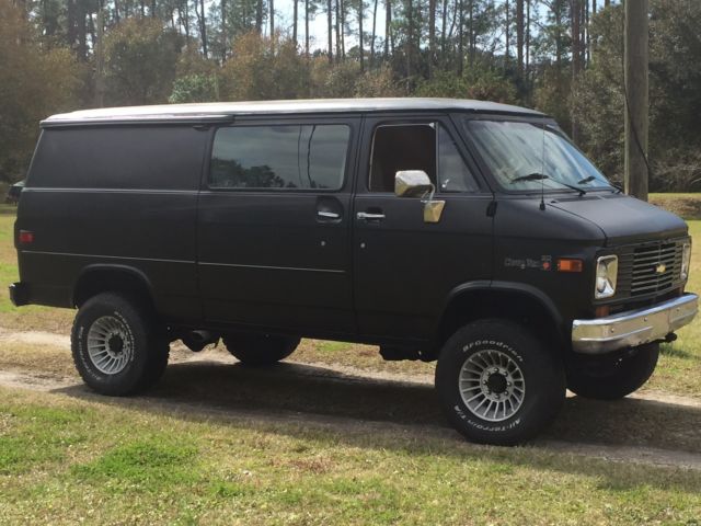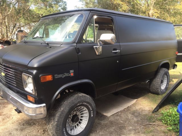 | 1977 G 30 1 ton Van. Factory 4x4 van. The 4x4 is not working right now the hubs may need to be changed. The van has a rebuilt turbo 350 trans. No leaks runs great I have been using it as a daily driver. All the lights work it is road worthy. I also put brand new rims and tires and just had it aligned. The van has very little rust. No rot at all the rot was fixed and it has a fresh flat black paint job. The pant is over marine apoxy so its well protected. I do have addition pictures if you have any other questions shoot me a text of phone call. 386-237-3239 Gus |