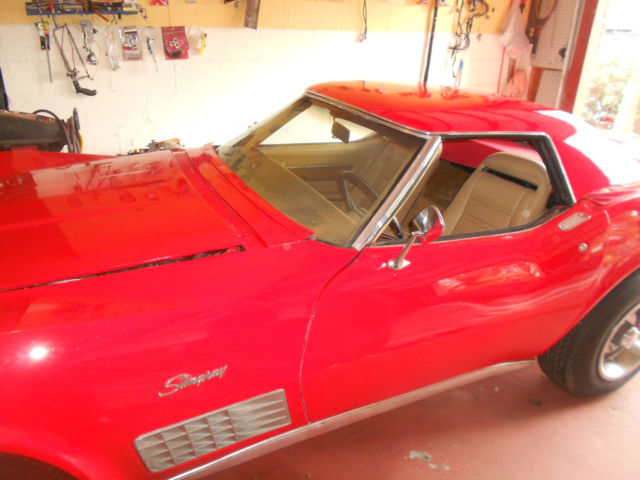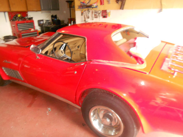 1970 CORVETTE CONVERTIBLE HARDTOPCLEAR TITLE - ENGINE RUNS GREAT - NEW QUADRA-JET - NEW BRAKE CALIPERS ALL AROUND -NEW CARPET - NEW FLOOR MATS - NEW BLACK CONVERTIBLE TOP - NICE HARDTOP W/GOOD LINER PAINT LOOKS FAIRLY NEW BUT NEEDS SOME FINISHINGLIGHTS WORK GOOD - NEEDS VACUUMS HOOKED UPBRAKES BLED WHEN CALIPERS WERE INSTALLED - NEEDS ANOTHER BLEEDINGNEEDS REAR EXHAUST COMPLETEDHAS 8 INCH RALLYS ON REAR, INCH RALLYS ON FRONT - TIRES ARE USED BUT HOLD AIRORIGINAL DOOR PANELS -SEATS HAVE SOME TEARS HASN'T BEEN DRIVEN IN A COUPLE OF YEARS - JUST CRANKED UP FROM TIME TO TIMESO, EHICLE NEEDS TO BE HAULED SINCE IT HASN'T BEEN ON THE ROAD IN A WHILE ANDNEEDS EXHAUST AND BRAKES CHECKED SELLING DUE TO HEALTH ISSUES |