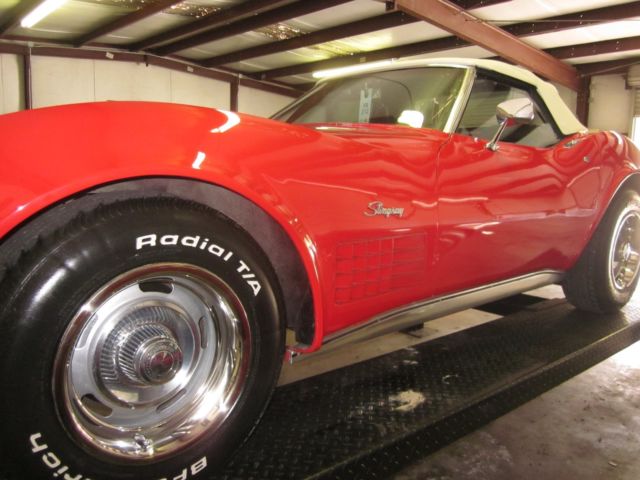| 1971 454 365HP CONV MATCHING NUMBERS 4 SPEED AIRCOND.TILTWHEEL.TELE WHEEL AM FM SAME OWNER LAST 25 YEARS.RED WITH TAN LEATHER.ORIG GOLD CAR COLOR CHANGED TWENTY YEARS AGO BUT IS STILL NICE.MILES ARE 35000 ON TITLE AN PREVIOUS OWNER STATES ARE CORRECT.NICE CHROME AN TRIM BFG TIRES POWERSTEERING AND BRAKES ORIG TANK STICKER. PROTECTO PLATE AN SHIPPING INVOICE.RUNS AN DRIVES GREAT SOUTHERN CAR NO RUST NICE UNDERNEATH. ALSO HAS HARDTOP FOR RIGHT PRICE NICE CONV TOP.CALL 770 535 7311 WITH QUESTIONS |