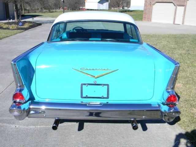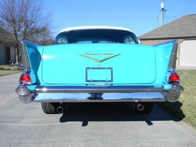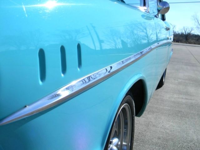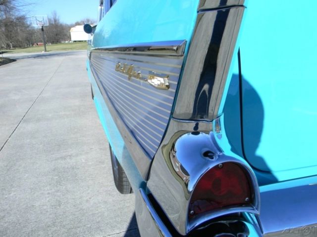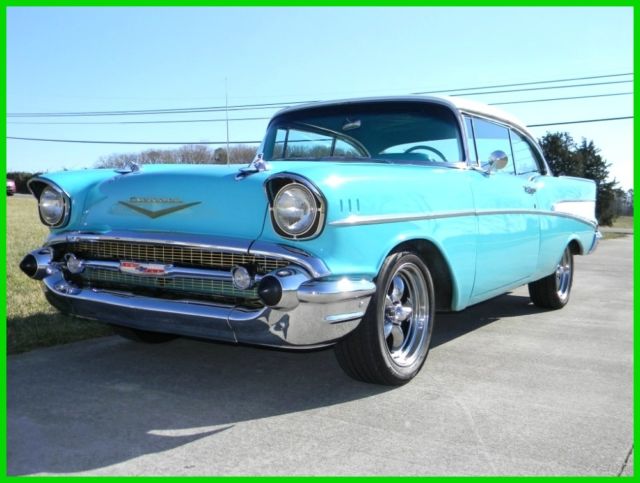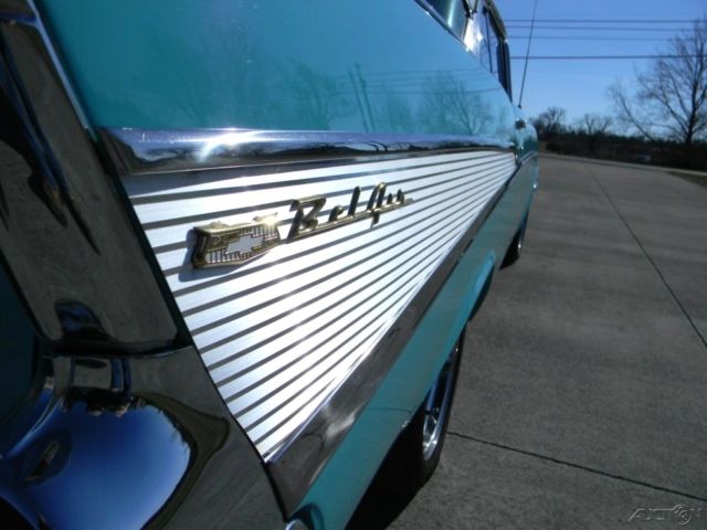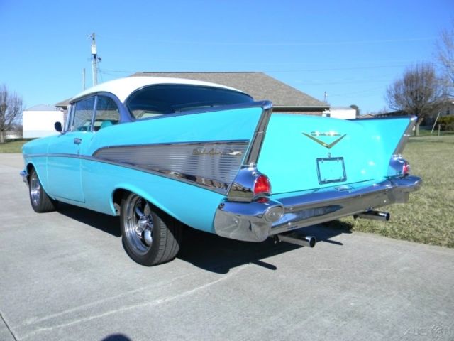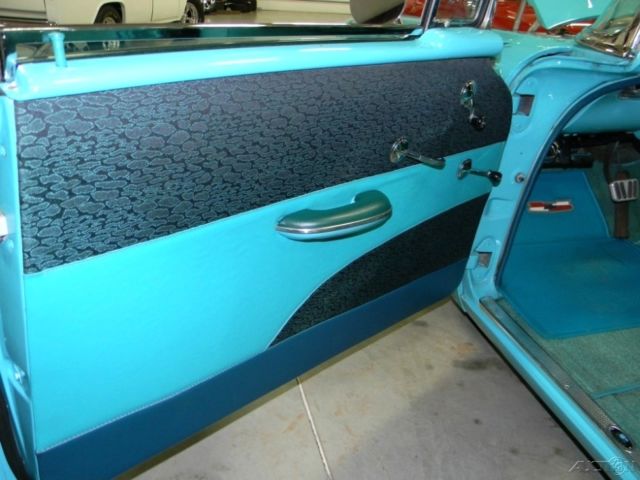 Air Conditioning, M / FM Stereo, utomatic Transmission --1957 Chevy Bel Air 2 Door Hardtop Paint: Turquois with White Top Interior Turquois and Black Engine: 350 Crate Engine Transmission 700R4 Automatic Transmission Power Steering Power Brakes Front Disk Air Condition AM/FM Radio Electric Fan 17 Inch American Racing Torque Thrust Chrome Wheels 215/50R17 Tires on Front 235/50R17 Tires on Rear If you have any question you can call |
