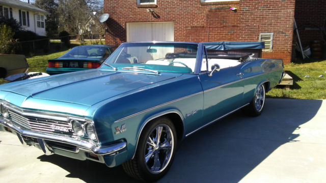 | up for sale a 1966 impala convertible SS marina blue white interior engine 396 400 turbo trans 12 bolt rear end.The car was originaly a small block 327 2 speed powerglide car. Car was a frame off restoration everything on car replaced or refurbished. The odometer shows 967 miles that's after restoration was complete.I have car listed locally I reserve the right to end sale at anytime. Car sold as is no warranty buyer responsible for shipping or pickup of vehicle there is$500 00 non refundable deposit at auctions end. The balance is due in 7 days. Car will remain in my shop until paid in full and funds have cleared. If you have any questions call my cell 864-395-7391 thanks for looking. |