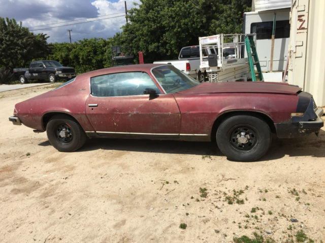 | Camaro 1973 LTNice project car runs and drivesV8 gasoline 350 EngineAutomatic TransmissionFlour ShifterNeeds Restoration but it is all there50,000 MilesClean TitleOn hand factory ACFactory tilt columnNo Reserve |