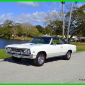 | this car features a very strong running 396 c.i 325 hp engine nicely dressed with all the right stuff . Has a 400 turbo transmission backed by a 12 bolt posi traction 3.73 gears All chrome is extremely nic, also has a new convertible top installed.American Classic Car Sales Please call with any questions or need further detail 941-928-2339 |