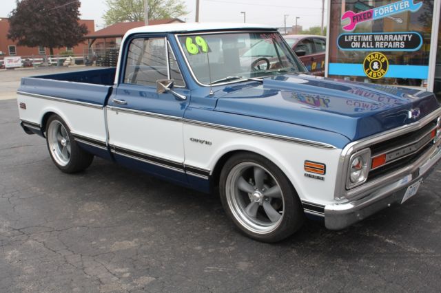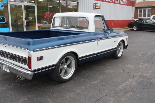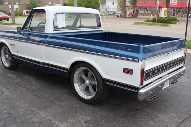 I am selling this truck for a client. He bought it finished, so I do not know every detail but will tell what I know. Reason for selling is his interests have changed, along with him having several other toys, he has to let a few go do to room. Drive train is a 454. I do not know what it has for internals. It's obvious it has a mild cam, aluminum intake and Holley carb. Starts instantly and runs smooth, hot or cold. Turbo 400 trans, shifts very nice. Gas tank moved under truck, between frame rails. (see under truck pics) Chassis: Lowered, Not sure how much. I would say 3-4 inches. All steering and suspension is tight. Has front disc brakes and ididit Column, shaft and joints. Has A/C which was done exceptionally nice. Look at under hood pictures of hose routing. They are nicely hidden. The entire truck was built with this level of quality. Interior is all stock, but new, except for the wood wheel, a/c and pioneer radio. Body is beyond straight and clean, top to bottom, front to back, including the underside. Only mods are a cowl induction hood and the fuel fill closed off do to the tank no longer being in the cab. Overall this is a super nice truck. I don't think you could find one nicer, for less money. It is priced to move. You can call me at 815-970-0776. Inspections are welcome, just call ahead to be sure I'm available. |