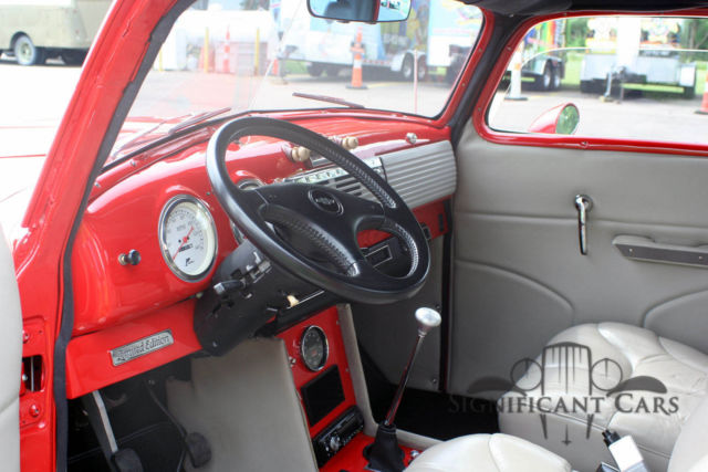 View our eBay StoreSign up for our Email Newsletter 1952 Chevrolet Pickup Custom Offered as a reserve auction. This over the top Build has a chopped top, custom frenched headlights, Mustang II Front End and Disc Brakes, A/C, Custom Leather Interior, Killer Stereo, Custom Dash and Gauges, Wood Bed and much more. Having covered less than 1500 miles since build this is a great opportunity to get a great custom truck for far les than the cost of building one yourself! We have many more photographs of this car, please click on any image to be taken to our full-size image list! The early 50's Chevy Pickup Truck is very popular to modify or hotrod. They are very simple vehicles, have a high survivor rate, and to be honest are much better modified than they are as originals. Our Ebay Policies: Significant Cars is one of the largest Collector Car Brokers and Dealers in the Country. Since 2003 we have worked hard to "change the way collector cars find new homes" by providing unparralleled web presentation of the cars we are representing. Most of our cars have over 30 photographs, and these can be viewed by visiting our website (our eBay handle dot com), or by clicking on any of the photographs in the black background area of our EBay listings. We welcome your call with any questions about any of our listings at anytime at 800-837-9902 and certainly encourage your personal inspection of any of the cars we are selling-just call us and we will be happy to set up an appointment for your to see and test drive the car. We realize that eBay is a difficult venue to properly evaluate an item as complex as an automobile. You can feel secure bidding with confidence on any of our cars since we guarantee your satisfaction! Should you win the auction and come to see the car and decide you do not want it for any reason, no negative feedback will result, any deposit you may have paid will be cheerfully refunded. Description images and copy © Significant Cars, Inc. |