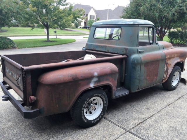 The truck comes with the second frame!!! 57 Chevy swb p/u that we bought for a project... We have too many things going to get this started and have decided to let it go. The truck has all the original parts except for the engine head, the engine block is sitting in the engine compartment and the remaining parts are in the bed. The truck has rust areas including floors, cab corners, lower door skin, pretty much all of the usual areas on these trucks. The truck has lived it's life in Mo. to one person and was a local farmer that worked it till it was time to park it. I have tried to show in good detail with the pics. No bids accepted from anyone with less than 5 transactions and no negative bidders in the last 6 mos. will be accepted. Buyer is responsible for shipping and pickup, but we can assist with the loading. This 1957 Chevrolet 3100 pickup truck originally came with a 6 cylinder engine. I have another frame with engine and transmission converted to a V8 using all 1957 Chevrolet factory mounting hardware. Mounting is done by the use of two stud posts at the front of the engine suspended on rubber biscuits for vibration isolation. This is the way the Chevrolet factory mounted the engine on V8 equipped pickups in 1957. Engine is either a 265 or 283 and it turns over, but the bad news is it was stored without sufficient antifreeze and has either pushed out a freeze plug or cracked the block. Water leaks out from behind the exhaust manifold on one side so, it being hidden by the exhaust manifoldI cannot see where it is coming from exactly. Original factory installed granny gear 4 speed, rearend, and front suspension. Frame is original and unmolested Any questions feel free to ask and will try to answer as best as I can... My cell phone number is(813-451-5712) |