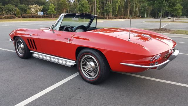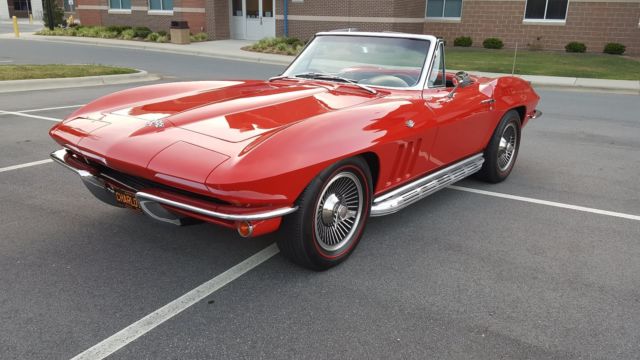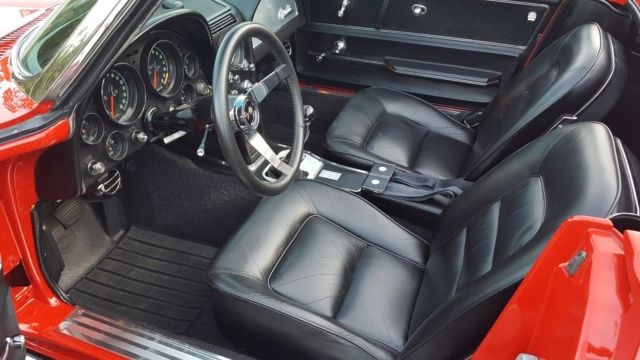 Magazine Cover Car and multiple Best of Show winnerOne high quality repaint in correct Rally Red Frame on, nut and bolt restoration in 2006 on a very nice original car500-700 careful miles per year and kept in climate controlled garage327 ci 350 hp engine completely rebuiltFAST 2.0 Fuel injection New Rockvalley fuel tank with intank pumpNew Tremec TKO 5 speed with Hurst shifterNew 3.70 Positraction unit with all new ujointsConcept One power steering boxRebuilt trailing armsRebuilt front suspension All new brake calibers and rotors with new dual master cylinder BeCool radiator with auxiliary electric fanMSD distributor High torque starterVintage Air and heatBilstein shocksComposite rear spring 1200 watt sound system with IPOD and Sirius connectionsNew leather seats and carpetsAll gauges restored and new Quartz clock installed The car was gone thru from bumper to bumper by an expert Corvette restorer and not one area was left untouched. The carhandles morelike a C5, and is totally sorted and problem free. |