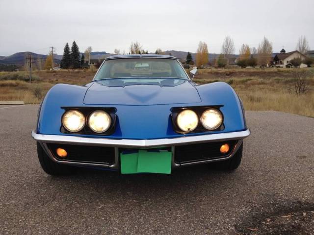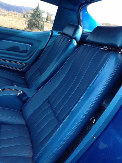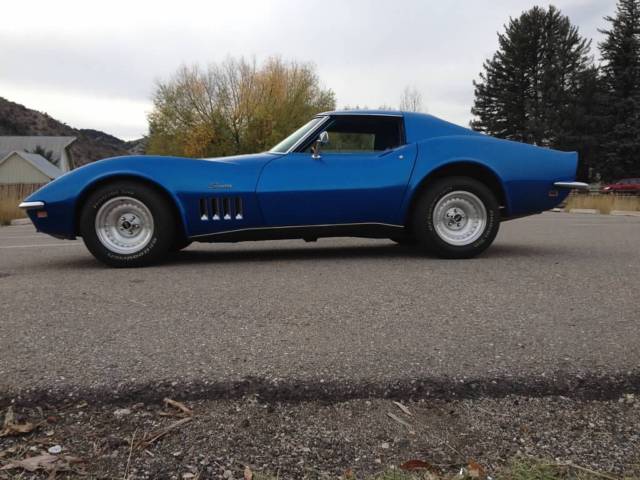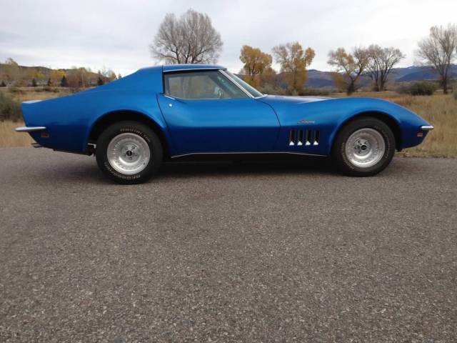 1969 Blue on Blue Corvette Coupe, 4 spd, 3:73 gears, re-built 350 ci NOM. Purchased car in 2012 with new clutch, u- joints in axle shafts, u- joints in drive shaft, complete front end re-build with ball joints, control arm bushings, tie rods, and all four shocks, 4 new "O" ring calipers, new brake hoses and pads, new Griffin aluminum radiator, belts and hoses, new gas tank and sending unit, new BFG radial T/A tires on Center line Ultra wheels. Since 2012 I have replaced: (2012) re-built Speedo and Tach, emergency brake, seatbelts with shoulder harnesses, shifter, upper and lower boots. (2014)Replaced all wiring harnesses including fiber optics, turn signal flasher, windshield wiper relay, motor relay and switch, door ajar and courtesy switches, headlight warning switches, fusses, ground straps, oil pressure gauge, clock, light bulbs, neutral safety switch, vacuum hoses, center gauge lens, fiber optic lenses, storage compartment box, courtesy light and lens. (2015)Replaced the carpet, heat barrier, floor mats, front fender louver trims, exhaust bezels, emblems, inside rear view mirror, interior pillar posts, header trim, T-top center panel, tail lights, rear deck plenum drain hoses and shields, LH/RH rear wheel bearing assemblies, LH/RH shock mount brackets, Re-built differential(internal spring plates, clutch packs, pinion bearings, carrier bearing, shaft seals, ring gear, crush sleeve, pinion seal, LH/RH axel shaft seals). The HVAC and the wipers do not work as I have not addressed these items yet. There is a small crack in the paint on the passenger side of the rear deck. The car looks and drives great, selling to upgrade to a C5 vette. The car had an L36 427ci/390hp, but that engine is long gone. Any original parts that I removed from the ca, have been boxed up and will go with the car.(970) 376-7689 call with any questions. Payment: Cash/Cashier checkin person.