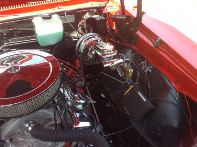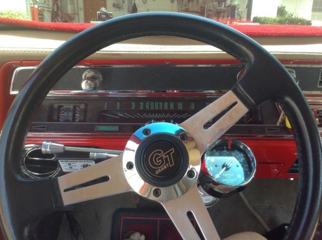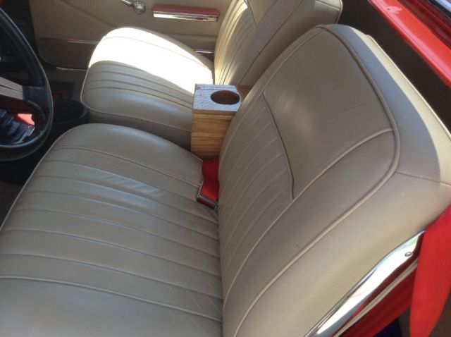 | Leather door panels, edelbrock intake with rochester quadrajet for mileage. Extra new Holley four barrel street avenger, sanderson headers, new brakes disc in front and drum in rear, new steering, Ididit tilt wheel, new bushings in swing arms, new tires and wheels, 17" in rear and 16" in front,torque converter lockup, cruise control, factory air |