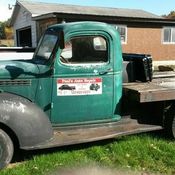 1946 Chevy 1 1/2 ton Grain Truck. Original 216 engine with rare factory five speed transmission. Brakes work but no guarantees for it has been stored inside. Rare short wheel base, 134 in. Excellent grain box. Floor and sides are also excellent with hoist. Bed measures 9 ft. 4 in. long. 7 ft 7 in. wide Side kit is removable. Bought from a Nebraska grain farmer over 10 years ago. Runs and drives excellent. All guages and lights work. Also rate factory sun-visor. Roof has a dent in the middle. One small crack on right hand windshield and back window cracked. Absolutely no rust ever. Truck is 100 percent solid.Tires are descent but not matching. Very clean truck. The truck has a good clean and clear title. Any questions on this truck. Feel free to call at 330-738-3977. Buyer is responsible for shipping. |