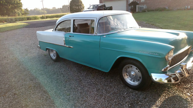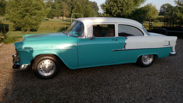55 chevy 210...completely redone 2 years ago.350 4 bolt crate motor with Summit heads, roller rockers, Lunati Voodoo cam,4 core alum. radiator,turbo hydo. trans.,remote trans cooler,12 bolt chevy rear end 3:70 gears.new stainless,new head liner,door panels and carpet.Hurst shifter,Center line wheels.lowered 2 inches with new front springs and lowing blocks in rear.power brakes, upgraded wipers.Traction bars,Mallory ignition, quatijet carb.coated headers and new mufflers and tail pipes.replica am fm radio new gas tank and all new brake and fuel lines.radiator cooling fan.less than 500 miles on engine and car since restoration.I did all the work and have all the receipts.Runs and drives great.