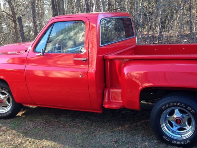 1973 Custom Chevrolet Truck. 383 stroker, 4 speed trans., pos. rearend, custom ladder bars with coilover. Complete frame off restore. All new parts, dolphin gages, vintage air condition, cab and frame are the only original parts, all else new parts, new front and back glass. Power brakes and steering. 75 miles on engine and transmission since restore. Lots of chrome under hood. Chrome side and rear view mirrors. Lots of horse power, very fast truck. Over $35,000 spent on restoration. Truck has been in family since 1975.