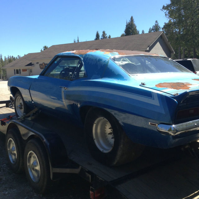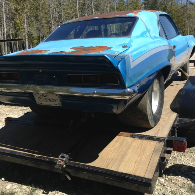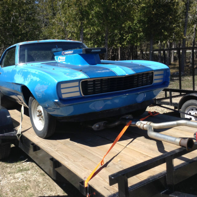 We have a 1969 Camaro drag car that has a fibreglass front clip, 9 inch Ford rear end 411 gears, fuel cell, has electrics but no engine or trans and comes with the wheels and tires shown, centerlines and drag slicks, roll cage etc... Car has no title because it has been a drag car since the 70's and they never drove it on the street. The car is very solid but does need paint as you can see and still retains the original floor pans. Put your engine and trans in and go racing. Car is sold as is with no title so do not bid if this is not acceptable. I was told it is a posi 411 rear 9 inch ford but do not know for sure if it is a posi or spool. Require a 500 non refundable deposit immediately after high bidder wins and the balance within 7 days. The car can be delivered depending on your location for a fee. You can contact Jeff at 906-440-1811 if you want a shipping quote.