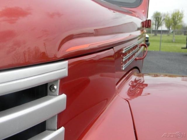 | 1946 Chevy Truck Paint: Burgundy Interior: Beige Leather Engine: 350 Transmission: Auto Auto Meter Gauges Front Disk Brakes 15 inch Weld Wheels 165 15 on front 265 75 15 on rear A/C Tilt Steering Column Shaved doors Remote door opener |
