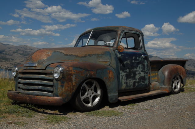 This is a fun little truck that I purchase from a custom builder in Montana. Great stance, solid, powerful and a lot of fun to drive. 1952 Chevrolet Pickup - Patina in color Components used: Truck and chassis: 1952 Chevrolet 3600 AD series Suspension: C4 Corvette front and rear, mounted on coil over shocks. 450lb spring rate front and 300lb spring rate rear Engine, Transmission and Driveshaft: 1994 Buick Roadmaster LT1 Engine, 4L60E Transmission, ECU is stock Wiring Harness: EZ Wiring Gauges: Dolphin Sterring Column: 1994 Buick Roadmaster Seat Cover: Lebarron Bonney Upholstery Wheels: Corvette 17" front and 18" rear Master Cylinder: CPP 15/16" bore Brake Booster: 7" diameter dual diaphragm Cooling Fan: 14" diameter electric push Radiator: 19" x 22" Speedmaster aluminum cross flow Fuel Tank: 1966 Mustang Fuel Pump: 45 psi frame mounted Exhaust: Stock LT1 manifolds, 2 1/4" pipe, summit racing 2 1/4" glass packs Bedwood: 8" hem/fir, rustoleum American Walnut stain, covered with Cabot Spar varnish |