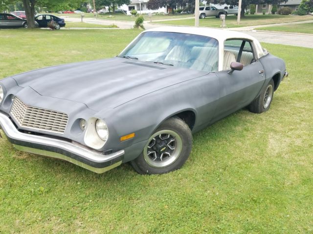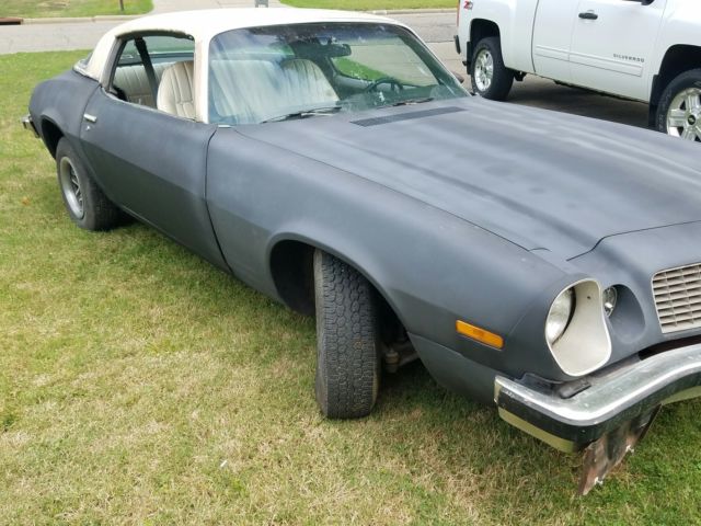 Rare 1975 4 speed numbers matching camaro. 350 4 barrel with i believe considered factory corvette heads. 38,000 miles. Car is in black primer.Was stripped,sealed,and primered. runs and drives. underbody in great shape ! Still needs a little work. Paint,vinyl top,a rear interior panel,weather strip kit,driver seat has tears. Original color is dark red,white interior and vinyl top,black carpet. Have not installed rear factory spoiler on car,its in thetrunk.For some reason my 20 yr ebay acct has disappeared and had to open a new 1.havent usedebay for a few years.Only had 50 feedback on it but still,not sure why it has disappeared. Any questions feel free to ask. Thank you for your time