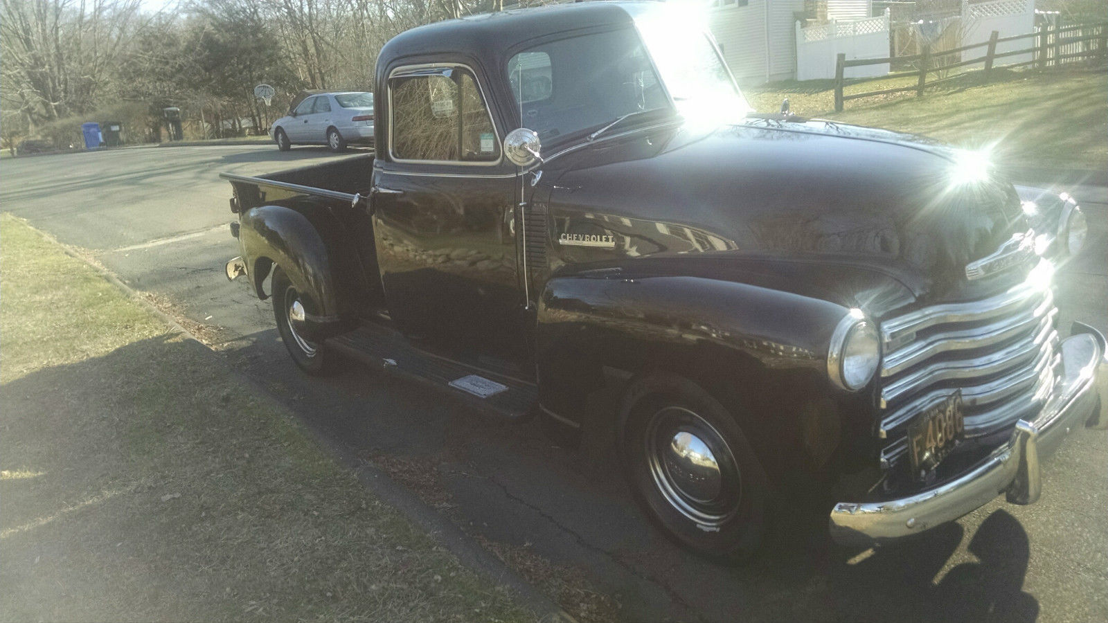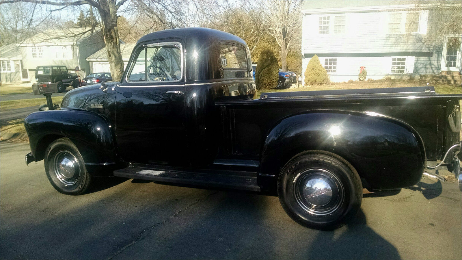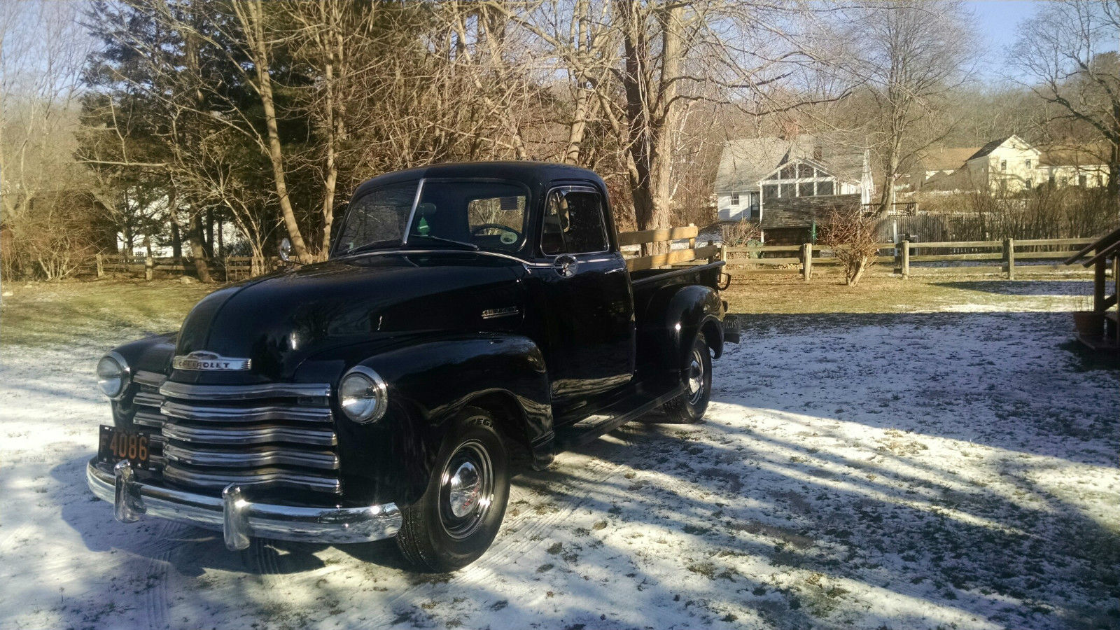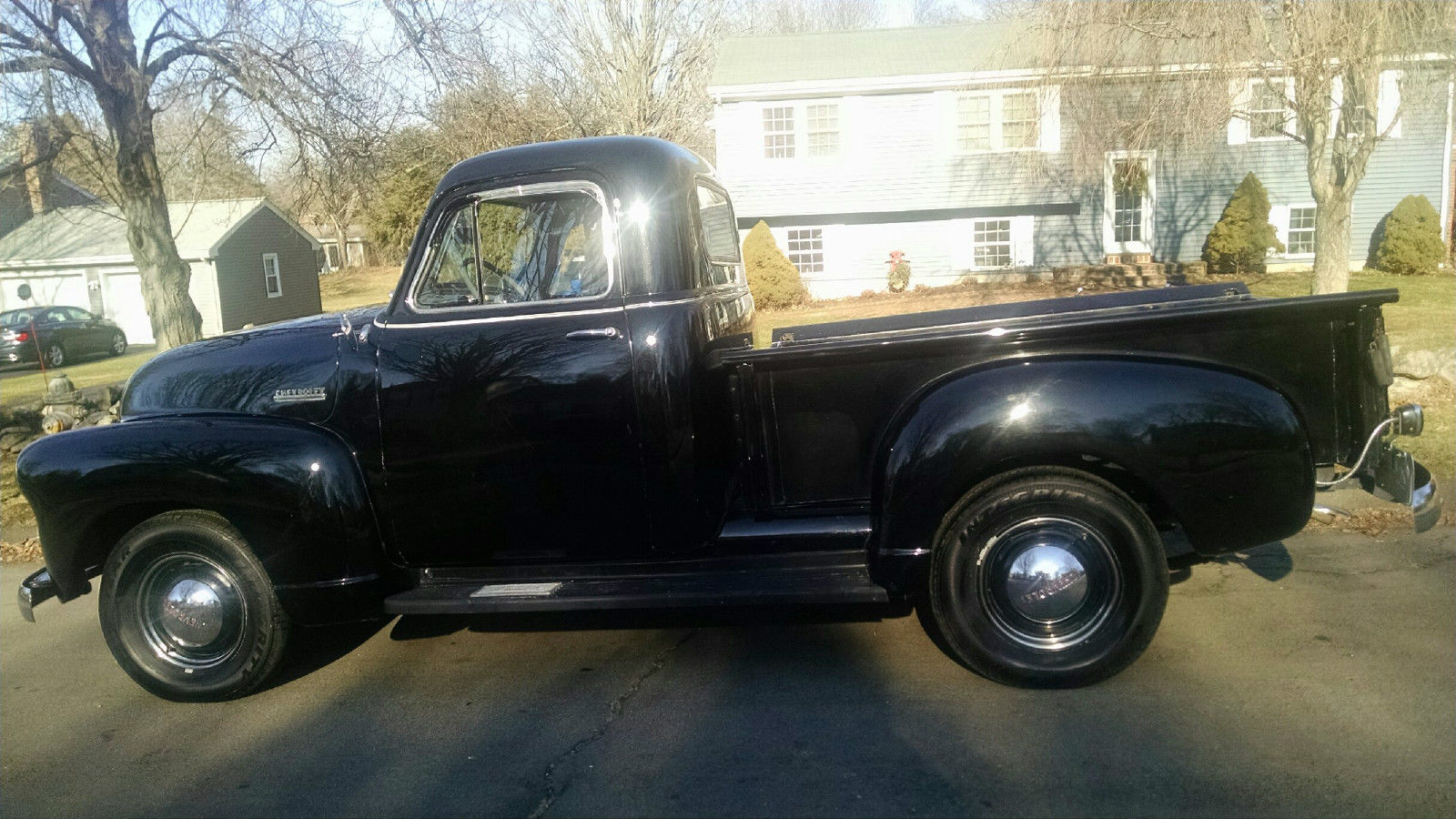 I am relisting this truck because of a person who said they wanted it and made an offer and then tells me he is out of money. Aother person wanted it but could not get the fiances. PLEASE BID ON THIS TRUCK ONLY IF YOU HAVE INTENTIONS OF BUYING IT. I have a super reasonable reserve on the truck . Up for bid is my very nice 1952 Chevy 3100 pickup. This truck is rust free and dent free. and is extremely solid. It has been converted to a 12 volt system. It has a new battery. Four brand new Goodyear radial tire and new muffler. The 216 engine was removed and replaced with a rebuilt 235 engine. This truck does not smoke at all. The engine compartment is very clean and runs very quiet. It has an almost new clutch and newer brakes. The interior is in excellent condition with the correct seating material. The dash is excellent. I have the correct rubber floor mat. It has a working correct radio that has not been hooked up to the 12 volt system yet. All the gauges work. The undercarriage is clean and rust free. The E-brake works great. It has the original hubcaps in excellent condition. It also has beauty rings Glass is perfect. The heater and defroster work. There newer shocks a new battery. altenator. and coil. The paint shows well and is shiny but has the normal sratches in the bed side wall and a few on the truck. I have an oak railing that is custom made for the truck. The Wood on the bed is excellent. Has duel mirrors. The engine does not smoke. Starts on the first try. It runs right down the road. The heater and defroster work. This is a very straight truck. Chrome in really nice condition not perfect but very nice. Shows well No dents. These advance design Trucks are getting very hard to find in this condition. Just look at what they are going for. I am asking a very reasonable amount of money for this truck. Just check around and you will see what I mean. If you have any questions. Please call Joe @ 860-857-4574 SOLD AS IS WHERE IS. NO WARRANTY IMPLIED. I have the truck for sale locally and have the right to stop the auction at anytime. CONNECTICUT IS A NON TITLE STATE THIS TRUCK WILL BE SOLD WITH A BILL OF SALE. THIS TRUCK IS INSURED AND REG IN THE STATE OF CONNECTICUT. WILL CONSIDER ALL REASONABLE OFFERS. I was also asked about the engine head being a 216. I just looked up the numbers and this is from a 1953 Chevy 23 I HAVE A NEWER TRANSMISSION FOR ANYONE WHO WANTS TO UPGRADE THE TRANNY. IT WILL GO WITH THE TRUCK. On Jan-13-15 at 13:57:20 PST. seller added the following information:I HAVE OWNED THIS TRUCK SINCE 2001On Jan-13-15 at 14:00:17 PST. seller added the following information:THAT IS NOT A SCRATCH ON THE HOOD IN THE COVER PICTURE. IT IS A GLARE FROM THE SUN.