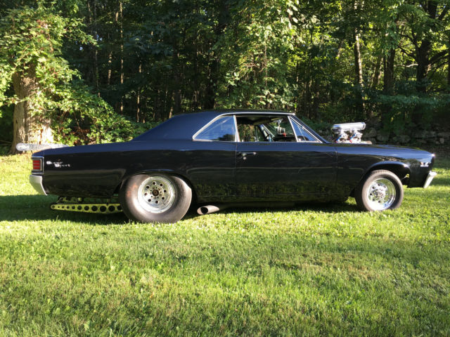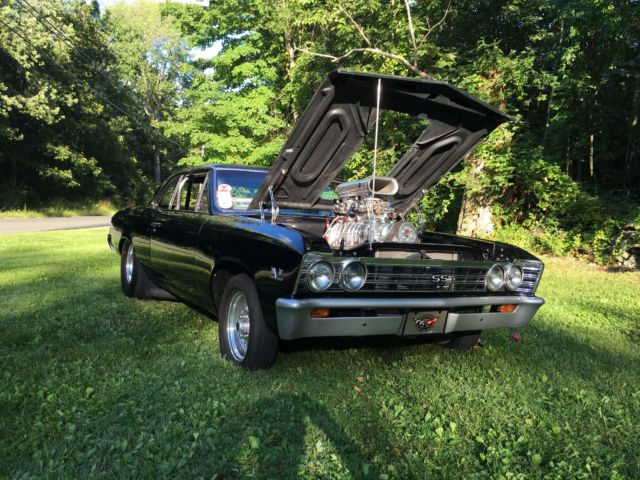 1967 Chevrolet Chevelle Super Sport SS 396 Code 138, Pro Street Two owner car with 13,500 miles. Garage kept since new. Car originally purchased in 1967. Driven only one year on the street before it was turned into a full time drag car. Never again driven on the street until it was restored in 2008. Not numbers matching. Full restoration in 2008. Everything new from aluminum radiator to rear gears. 3,000 miles on present drivetrain. 468 c.i. blueprinted and balanced big block Chevy. BDS 871 blower wih two 750 Holly carbs. Flat tappet cam with roller rockers. 2 3/8" custom headers with 3 1/2"flowmaster mufflers. Two Holley blue pumps, 12 gallon fuel cell. 570 HP at rear wheels on chassis dyno. Doug Nash 5 speed. Dana 60 rear with 3.90 gears, spool, Summers Bros. 35 spline axles. Front disc brakes. Rear drums. Weld wheels :15x3 1/2" front, 15x15" rear. 6 point cage. Removable driver side bar. Fiberglass hood, trunk and bumpers. Autometer gauges. New rugs and headliner. Car runs excellent at 180 degrees, drive anywhere. For further information call Rick Russell at 203-510-1240. Car is located in southwestern Connecticut. |