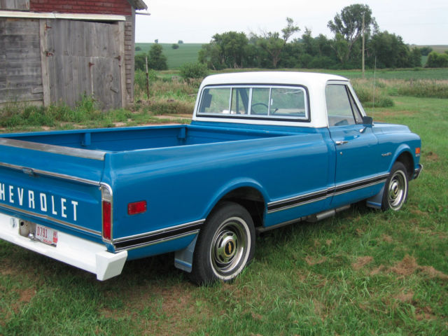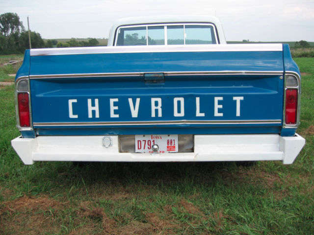 One owner. Garage kept. Plated and driven every year since new. Oil changed every 2,000 miles. Unrestored including paint.(except left front fender. Minor Fender bender repair many years ago) Very well cared for and maintained. Runs, drives and steers great. Doors close real nice. Hood opens by itself. Doors and windows seal good.No whistling. Heat controls work good.Emergency brake not stuck. No rust under hood. Everything works.( add on cruise control does not) Very good overall condition.Looks 15 years old not 44. 3504v motor. 350 trans. Power steering, power disc brakes. Thoroughly inspected. Ready to drive. Good shocks,tires and exhaust. Needs nothing. If it was bad or looked like it would fail in the near future it got replaced. Mechanically sound. No hidden defects. Driven daily just to make sure its all good. Rear end has more slack than it should but normal for the miles. Wood bed has been repaired. Sold as- is with no warranty. Expressed or implied. I welcome any requests for additional photos or info. Work performed/new parts New belts fuel pump Distributor rebuilt carb rebuilt Fresh tune up Oil changed New brakes front and rear Valve adjustment/new valve cover gaskets 2 new u-joints transmission mount rear trans seal center support bearing(driveshaft) balance driveshaft Body work new rockers both sides(older repair) one cab corner. (older repair) Recent body work 4 box support braces Add ons Custom rear bumper air horn trailer brake cruise control trans cooler aftermarket radio mirrors Payment 500 .00 non refundable deposit to pay pal. Balance to be paid within 5 business days by bank wire transfer, pay pal,cashiers check drawn from local bank or cash in hand.(Special arrangements can be made past 5 days if you chose this option)