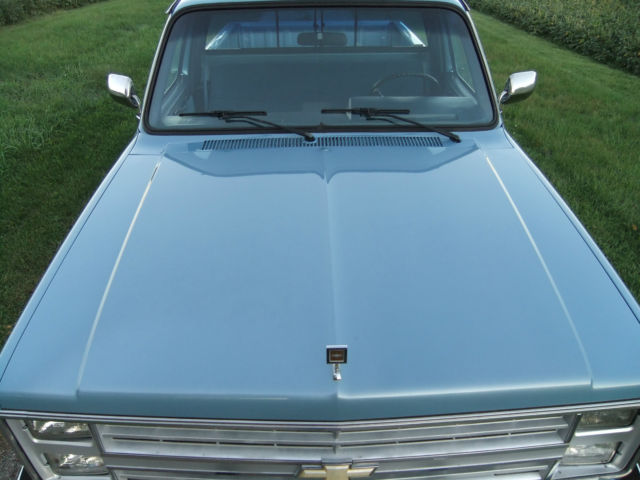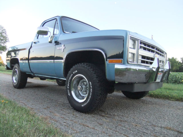 Selling my beautiful 1987 Silverado 4x4. Blue on blue, with a the most attractive two-tone paint available that year. 350ci V8 with TBI, 700R4 automatic transmission with overdrive, and automatic front 4x4 hubs. This is a north Georgia truck with zero rust ever and a laser straight body - all original metal. The original owner passed away a few years after buying it new and it was left to sit. Although extremely low miles, the truck was frame-on restored in 2012 to make it show quality. The bed was stripped and rotissarie painted but the cab stayed on the frame in order to preserve the factory driving characteristics, it needed nothing. The engine and transmission were both rebuilt to factory specs at that time. It runs and drives like a new truck. Has new fuel tanks, fuel lines, brakes, carpet, seat cover, and BF Goodrich tires. Everything on this truck is in working order except for the AC (needs to be hooked up). Even the cruise control works. I've put almost 2k miles on this truck this summer, I'd trust it to drive anywhere in the country. You'll notice in the pictures that I've chosen not to repaint and detail the engine bay or undercarriage. This is because the factory paint and finishes are in such great shape and I appreciate the originality. This truck has nothing to hide. You can't stop for gas in this truck without someone paying a compliment to its condition. I rate the paint at 9.9. It was done right, you can read a news paper in the reflection. Overall its an extra nice short bed 4x4 Silverado with super low miles. You won't be disappointed. Call Jake at (937)215-0679 with any questions.