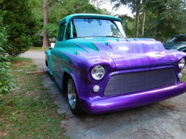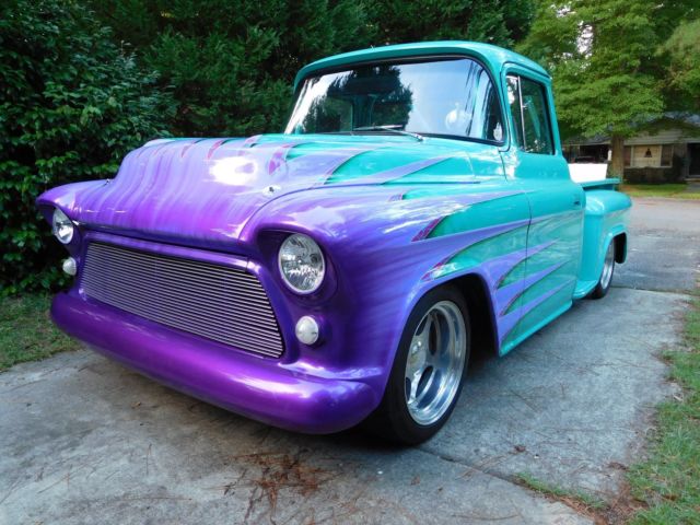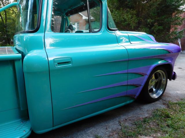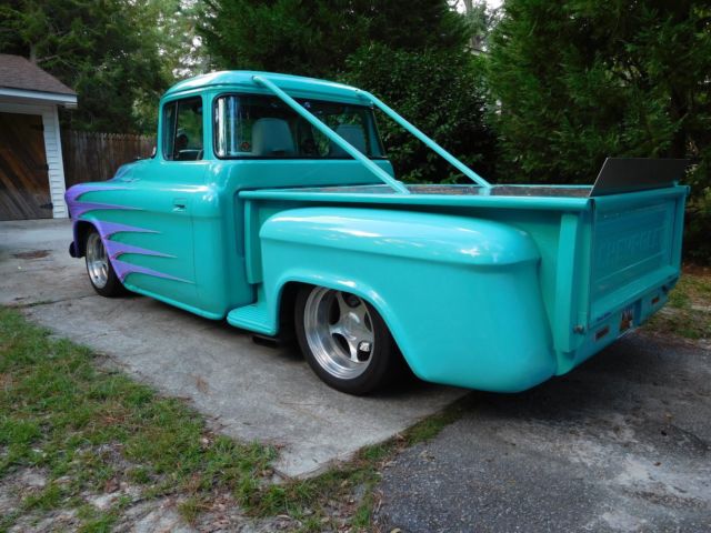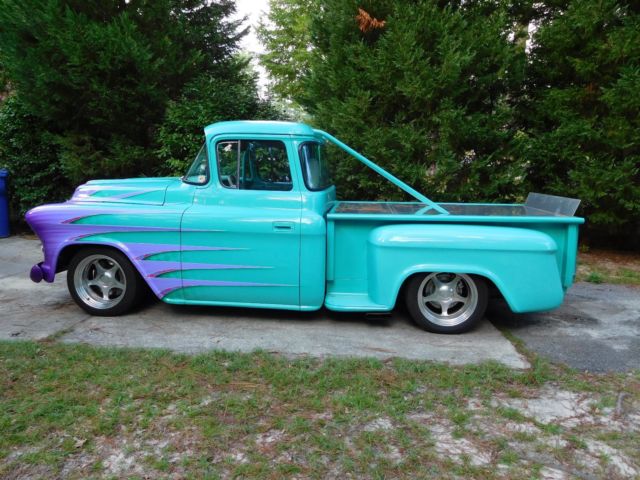 1957 custom Chevrolet pickup w/a 400 c.i. small block motor. Motor has a Callie crank, 6" Eagle rods, 9-1 Ross pistons, Crane Roller rockers, 735 Holley carb & an 8 qt. Moroso oil pan, valvecovers B&B. Motor is set back 3"s & lowered 2"s.Transmission is a Ford 9" 4.11 posi traction w/a 2200 stall converter. Truck has a 31" aluminum radiator, a Jazz 22 gal. fuel cell, Mallory fuel pump & filter. Fuel cell has been removed & cleaned within last 3 weeks &new fuel lines run from fuel tank to carburetor. MSD ignition, Taylor wires, 13/4"McCabe headers, 3" exhaust, w2.5" Turbomufflers. La Cara steering wheel, Baer disc brakes installed in last 3 weeks(all four wheels)w/less than 20 miles use on them. All brake lines have been flushed, carburetor tuned & rear axle seals replaced at the same time brakes were installed. Boyd 9"X17" front wheels & 11"X17" on rear...running 245X45ZR Nitto tires on front & 315X35ZR Nitto on rear. Suspension is by coil over shocks & Flexi Flyerleaf springs. Front frame clip is an '85 Cutlass...remainder of frame is box tubing & built on a frame machine; steering column is '85 Cutlass, also.10 pt. roll cage & 5 pt. seat/shoulder harness. Cab, box & fenders all steel, '57 Chevy & sits on dropped spindles on all 4 wheels;frontbumper is rounded. Doors close smoothly, door/window cranks are billet, windows roll up/down as they should.All gauges are auto meter &hydraulics raise thefront end approx. 4"-5"s. Custom paint, rear mirror, recessed tail lights & license plate, new battery, hidden tail gate releases, manual cut-off below tail gate(see pics), power steering, vintage heat-air(air cond. does not work).Paint chippedin places along front of hood. Ask any questions....deposit through pay-pal within 24hrs & final payment w/bank check preferred. Truck & title released when all payments are available to me. S.C. titlein my name....Thanks for looking!